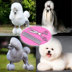 U setu se nalazi sve što trebate za kompletnu njegu dlake: ravne škare za precizne linije, zakrivljene škare za sigurno oblikovanje oko šapa, ušiju i lica, efila škare za omekšavanje prijelaza te fini metalni češalj za raščešljavanje i finiš.