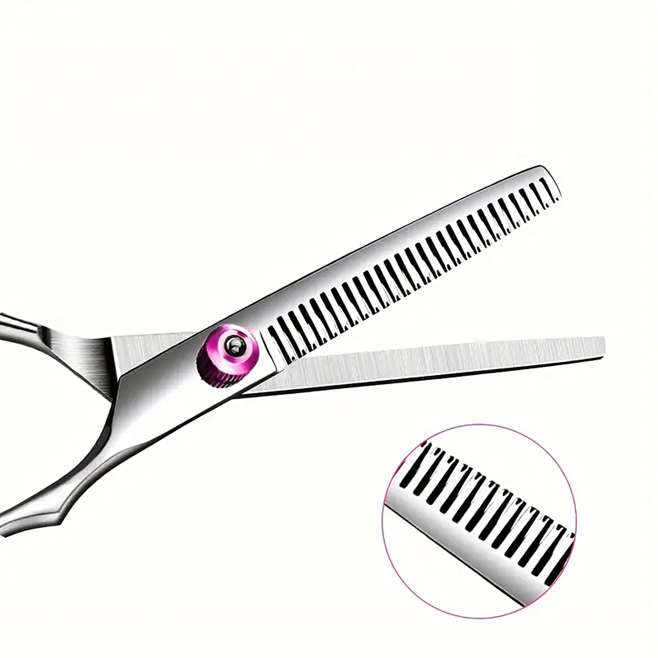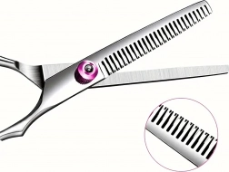 Efila škare s finim zupcima glatko smanjuju volumen i omekšavaju prijelaze, idealno za prirodan izgled bez tvrdih linija.