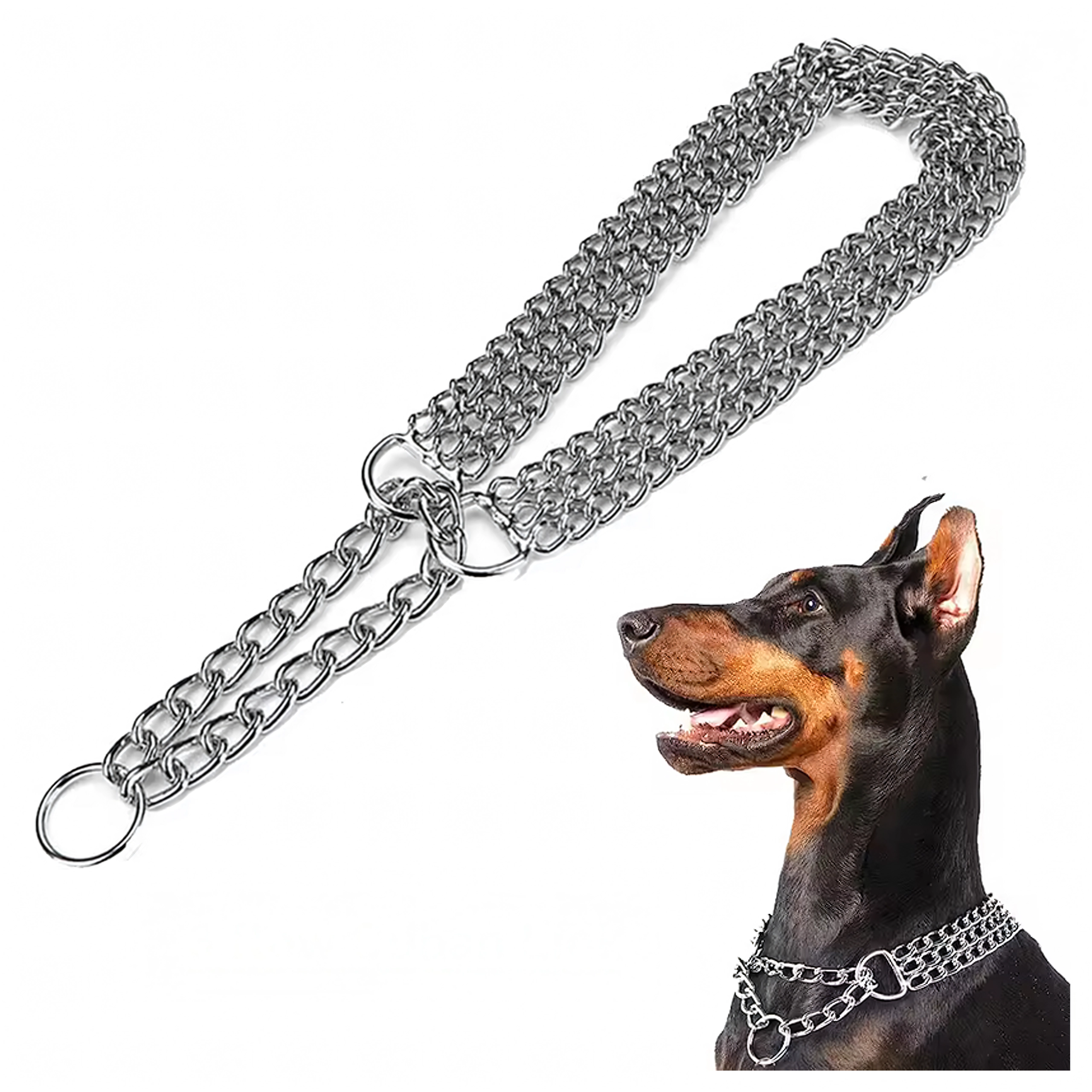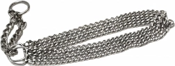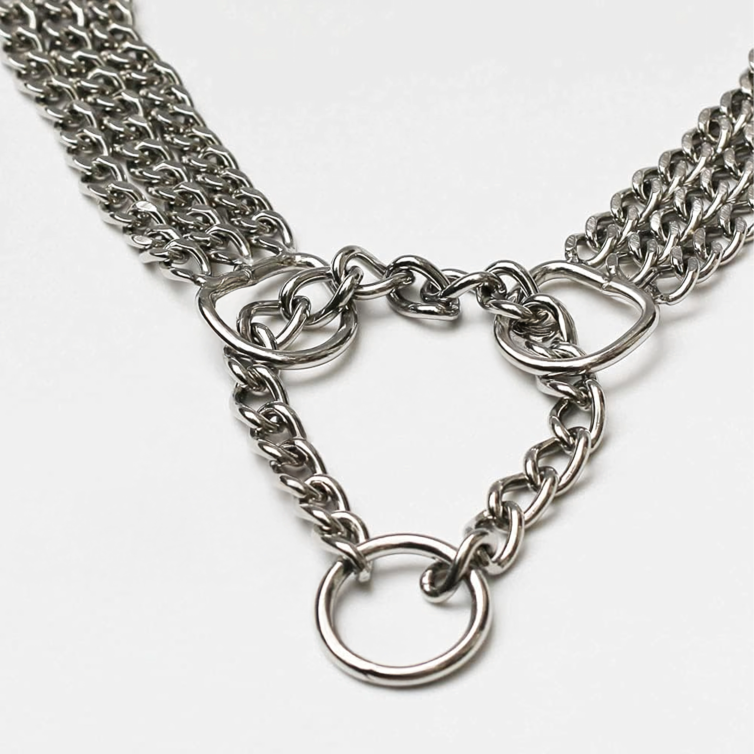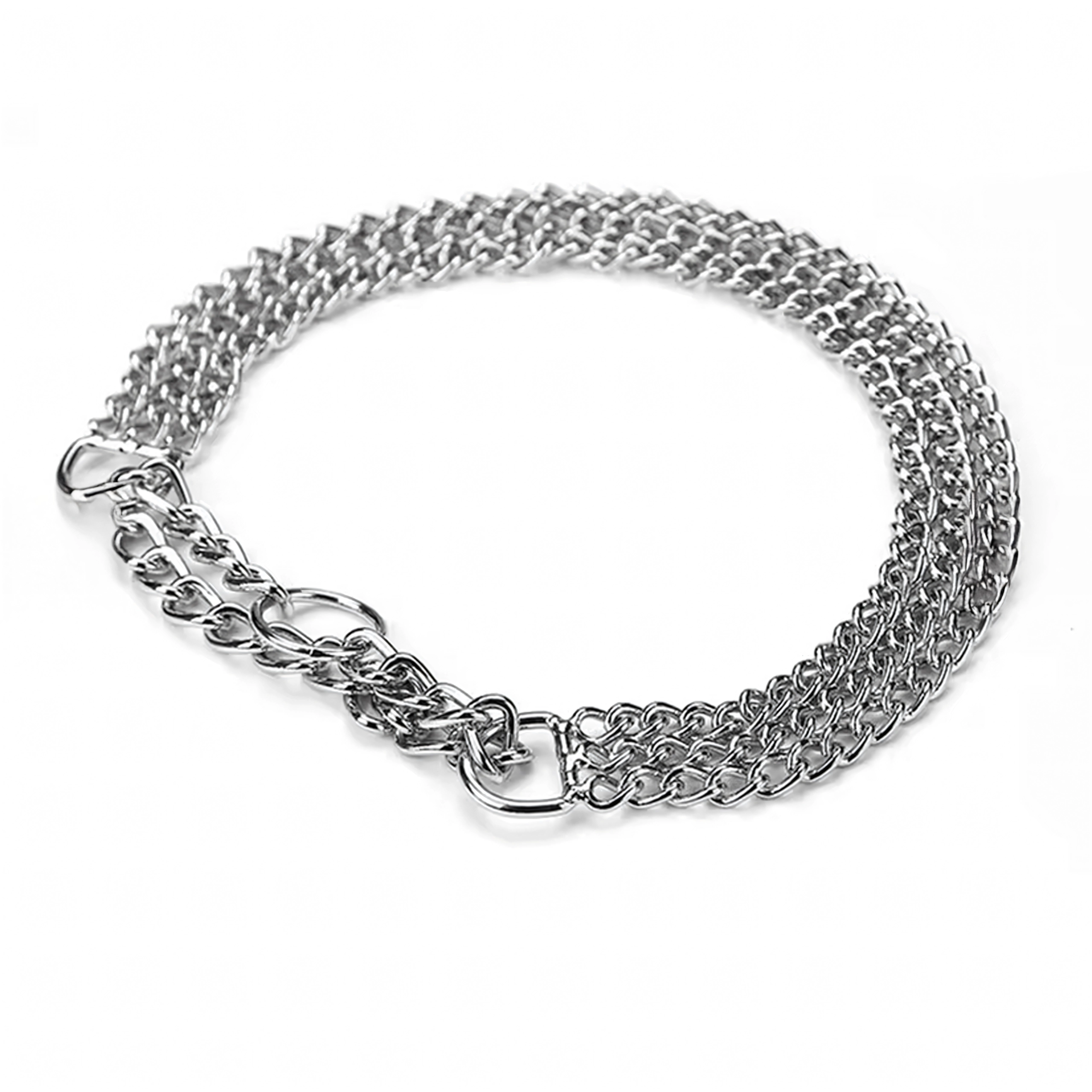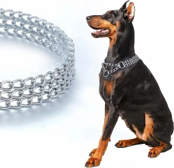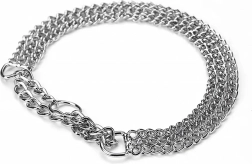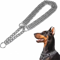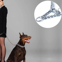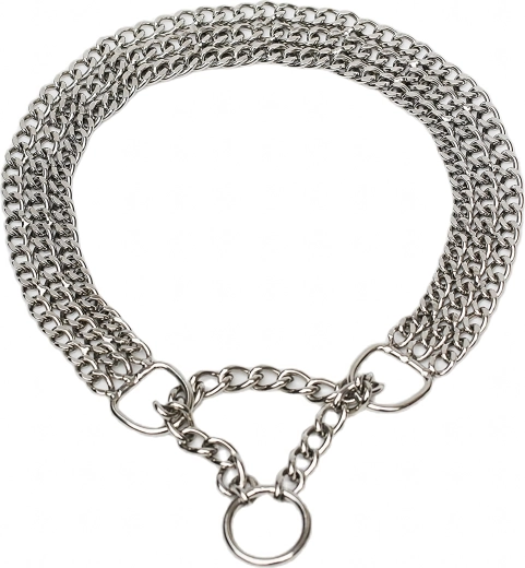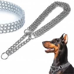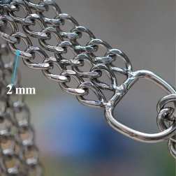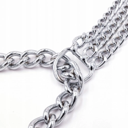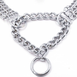 Ova stezna lančana ogrlica izrađena je od kvalitetnog kromiranog čelika koji se odlikuje visokom čvrstoćom, otpornošću na koroziju i glatkom površinom za udobnost psa. Trostruki lanac ravnomjerno raspoređuje pritisak i omogućuje preciznu i osjetljivu kontrolu tijekom treninga.