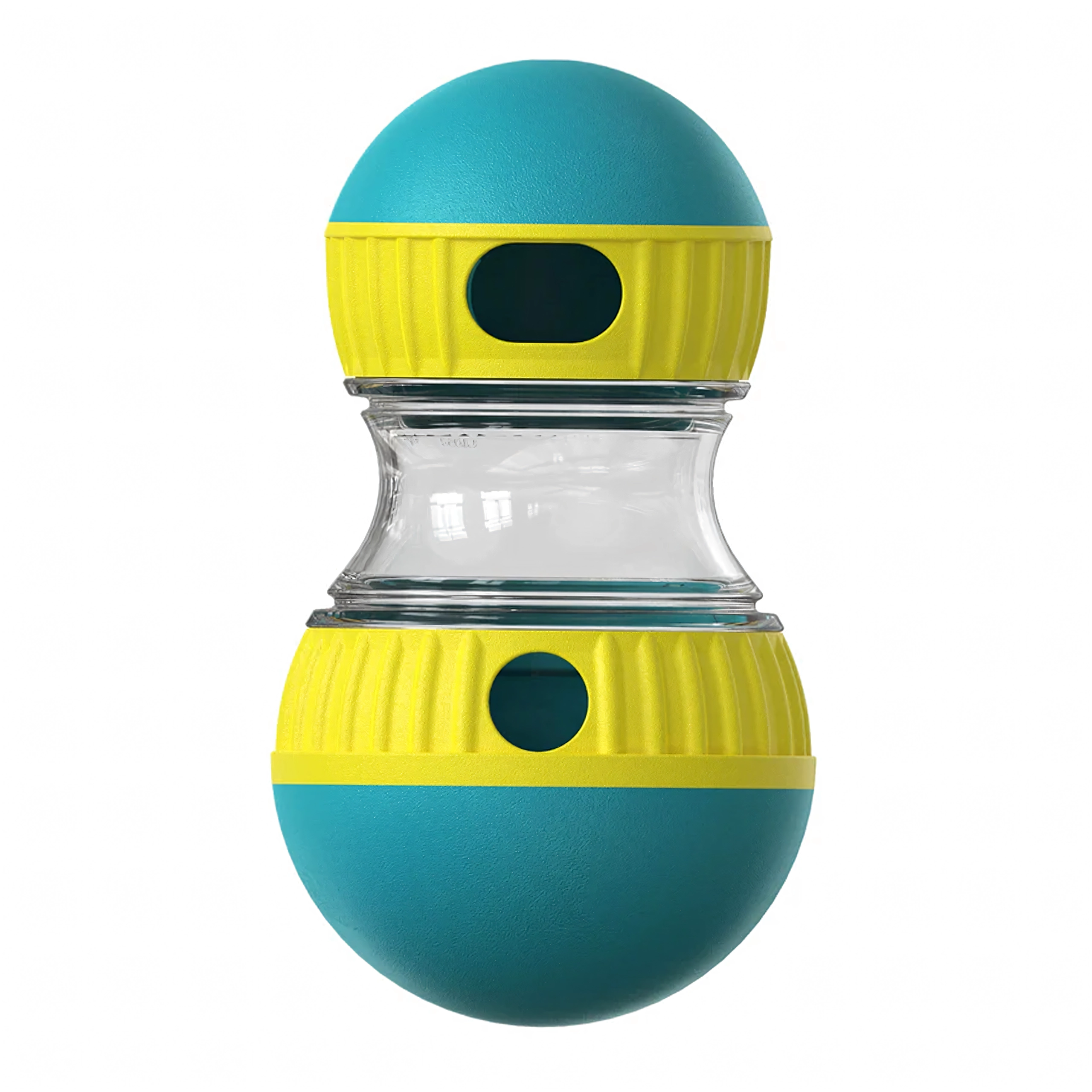 Pametna igra i hranjenje u jednom. Prozirna komora omogućuje praćenje granula unutra, podesivi otvori postupno otpuštaju poslastice, a pas je motiviran kotrljati igračku i gurkati je šapom ili njuškom. Zahvaljujući sporijem doziranju potiče pravilnu probavu i smanjuje proždrljivo jedenje.