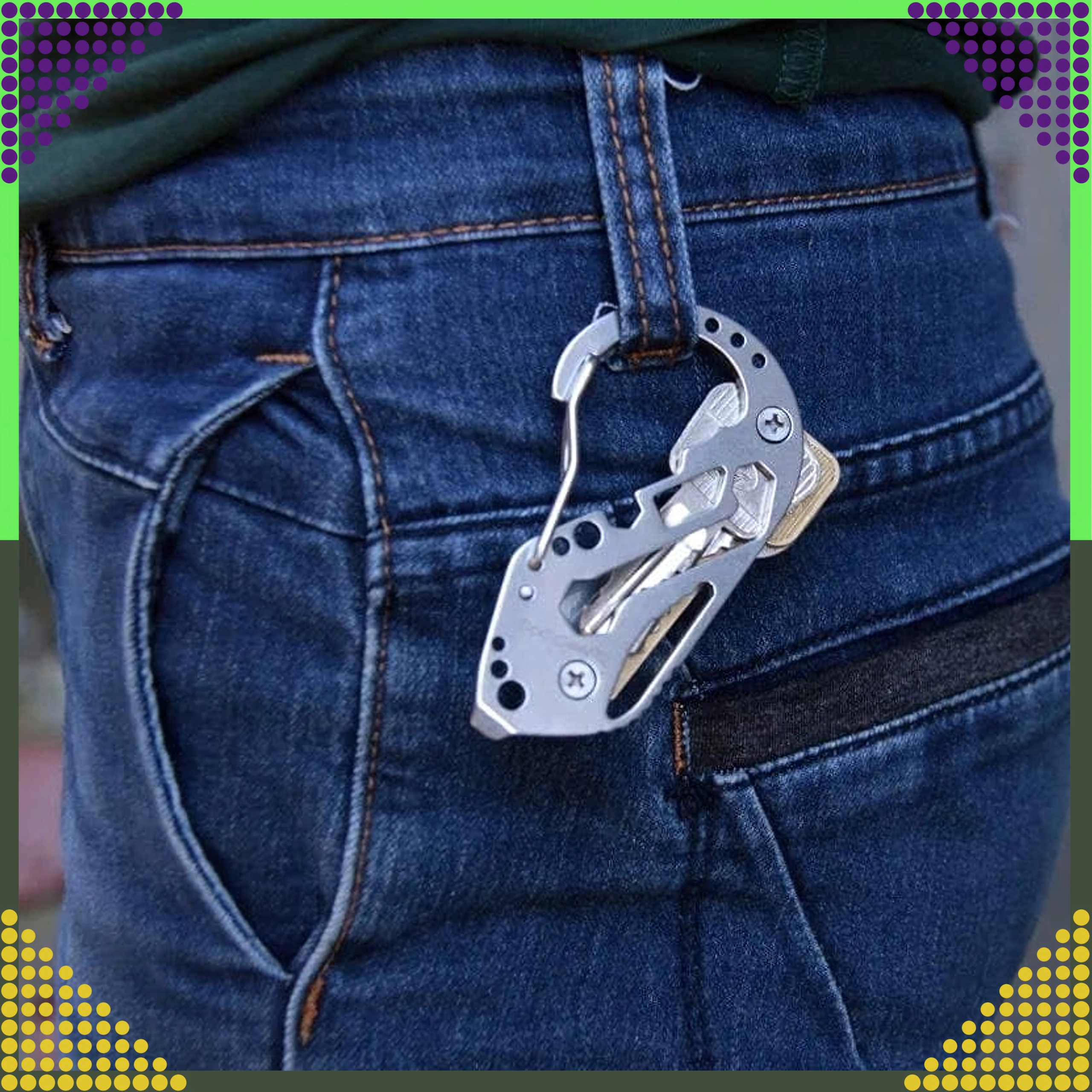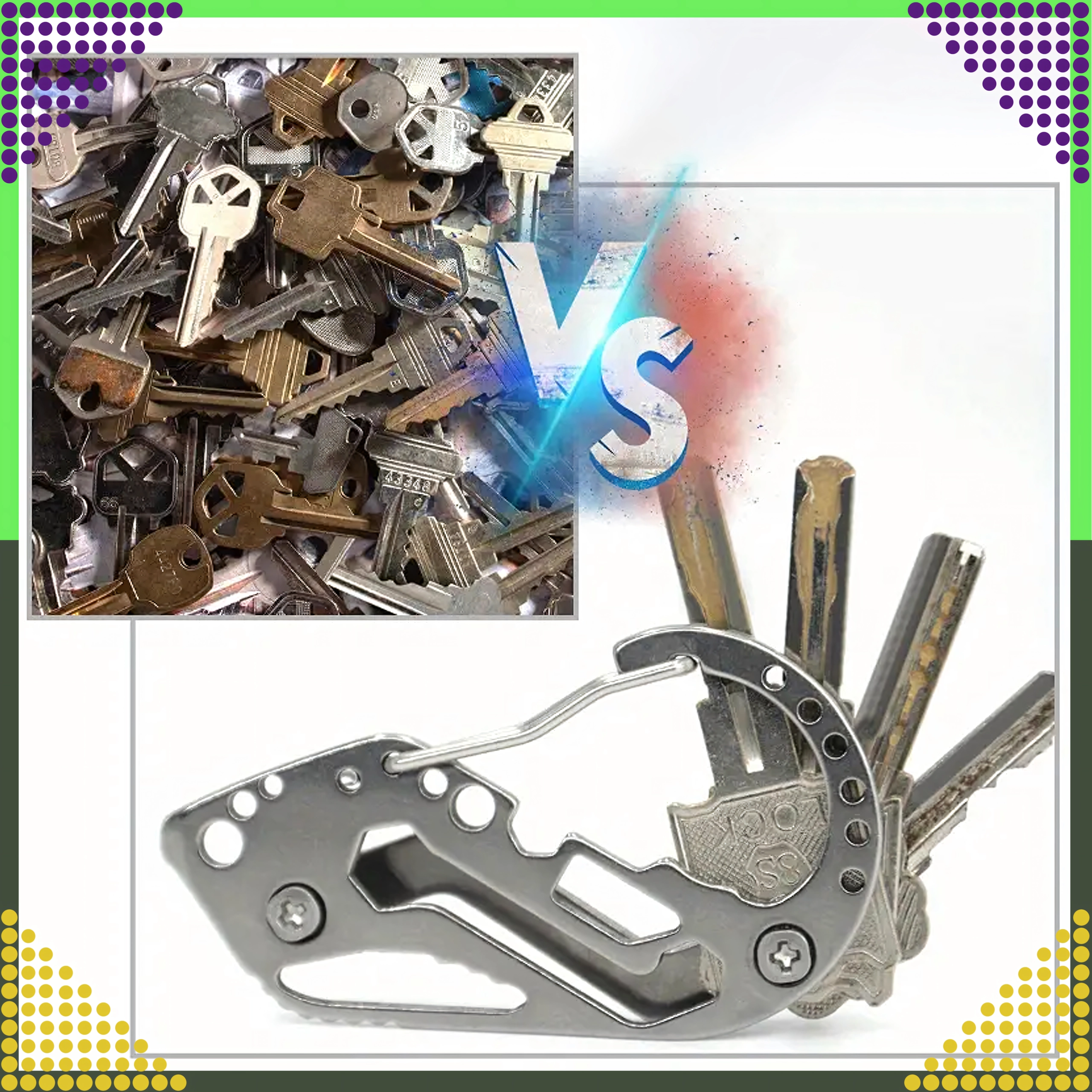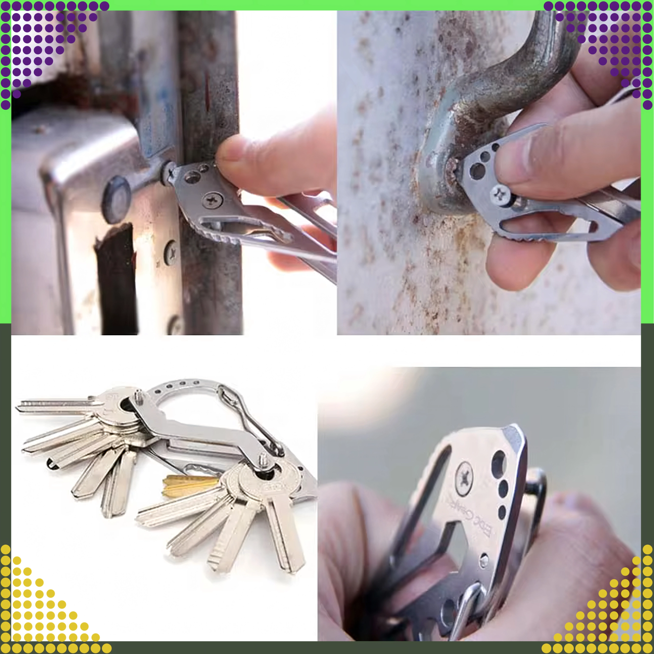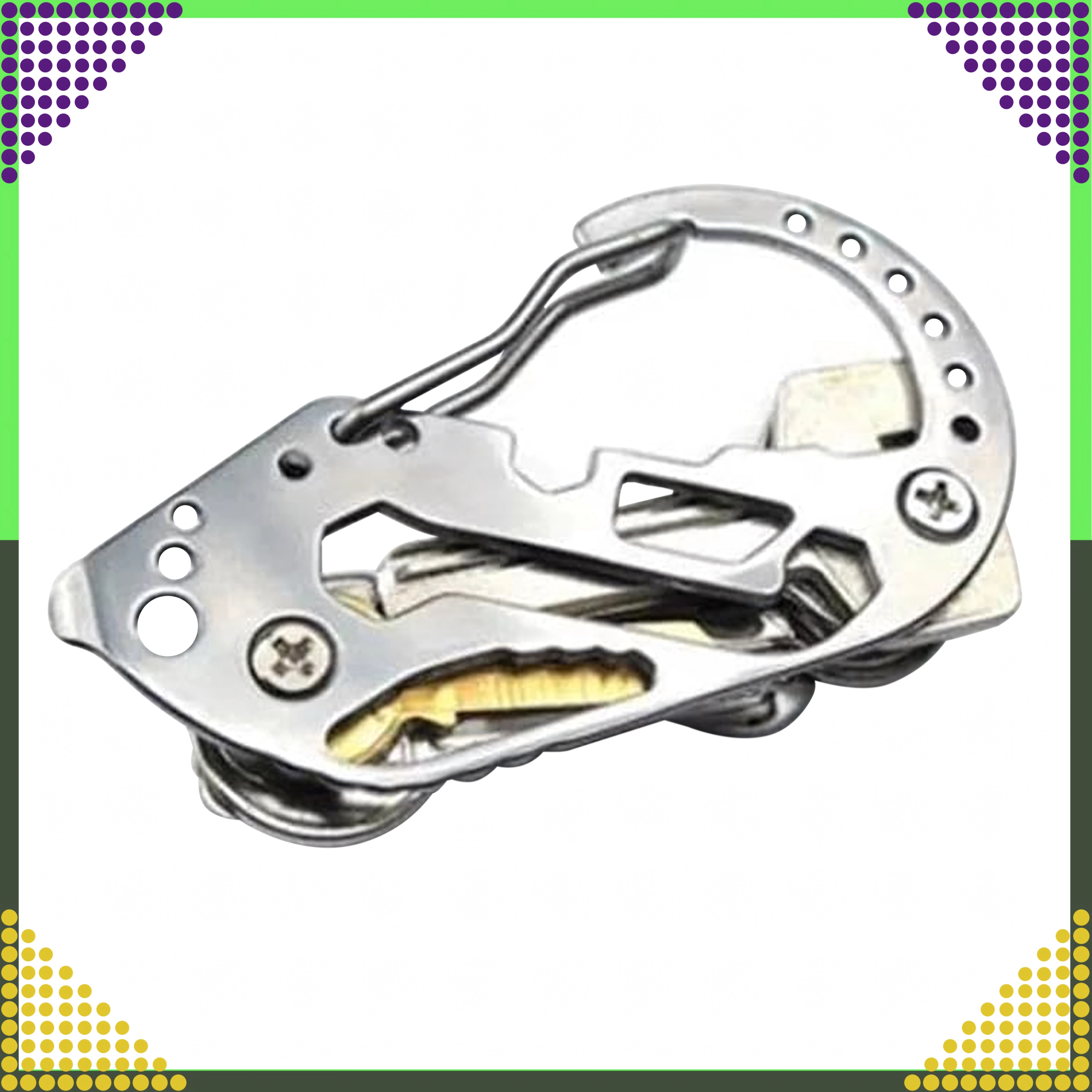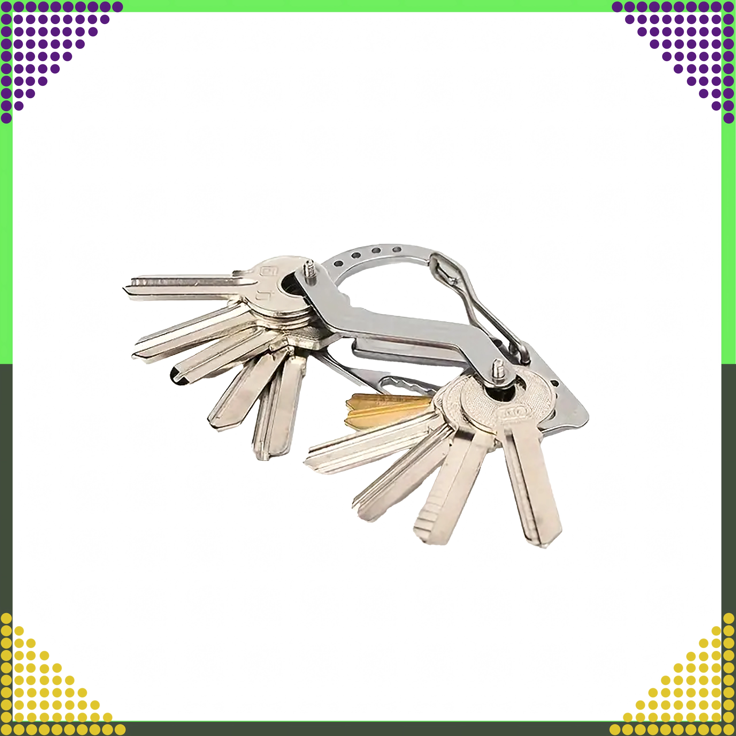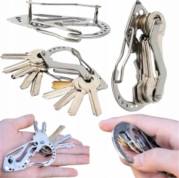 Praktičan i izdržljiv organizator ključeva s karabiner kopčom spaja red i funkcionalnost. Kompaktno metalno tijelo drži do 8 ključeva u jednoj tankoj sklopljenoj garnituri, pa ništa ne zvecka niti smeta u džepu. Zahvaljujući opružnom zasunu karabiner brzo pričvrstite na omču hlača, ruksak ili torbu.
