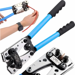 Čelična, teškodužna konstrukcija s dugim krakovima i protukliznim prihvatima povećava udobnost i sigurnost rada u razvodnim ormarima, radionici i na montaži. Alat je prikladan za bakarne i aluminijske kabelske stopice i tuljce, idealan za električare, mehaničare i zahtjevnu hobi uporabu.