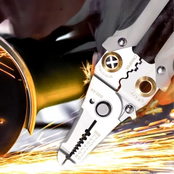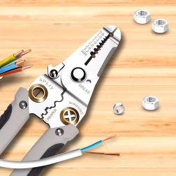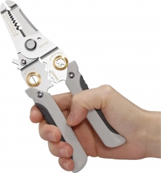Ova multifunkcionalna kliješta za kabele olakšavaju sve poslove s elektroinstalacijom. U jednom kompaktnom tijelu dobivate alat za precizno skidanje izolacije vodiča, čiste rezove, pouzdano krimpanje konektora te čvrst prihvat i organizaciju kabela. Kvalitetni nehrđajući čelik i promišljena konstrukcija osiguravaju dugi vijek trajanja i preciznost.