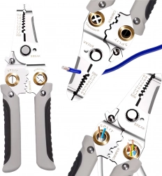 Označene otvore za različite promjere vodiča osiguravaju brzo i precizno skidanje izolacije bez oštećenja žila, dok integrirane oštrice omogućuju gladak rez.
