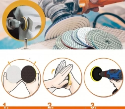 Koristit ćete ih pri radu s gres porculanom, keramikom, prirodnim kamenom, mramorom i granitom. Pogodni su za rubove i ravne površine, za radionice, montaže i renovacije. Kompatibilni s uobičajenim kutnim brusilicama i polirkama s odgovarajućim nosačem na čičak.