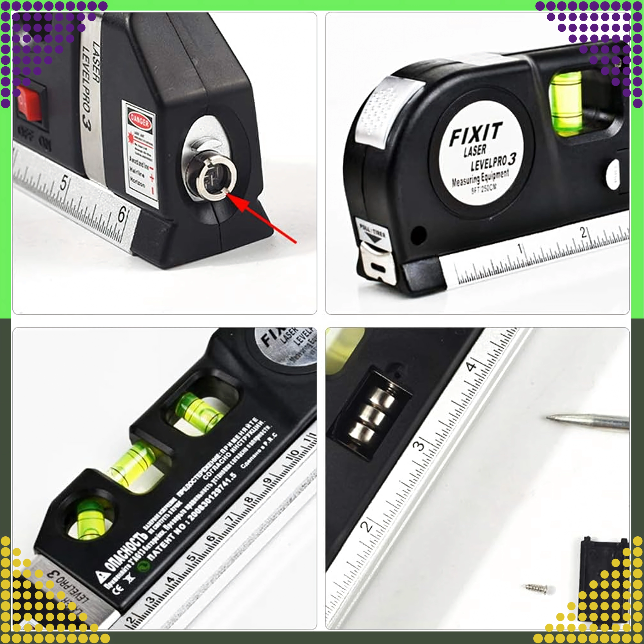Svestrani alat spaja više funkcija u jednom: laserska linija za brzo poravnanje, 3 precizne libele (vodoravna, okomita i 45°) te integrirano mjerenje bez potrebe za dodatnim alatom. Uključene LR44 baterije omogućuju početak rada odmah po vađenju iz pakiranja.
