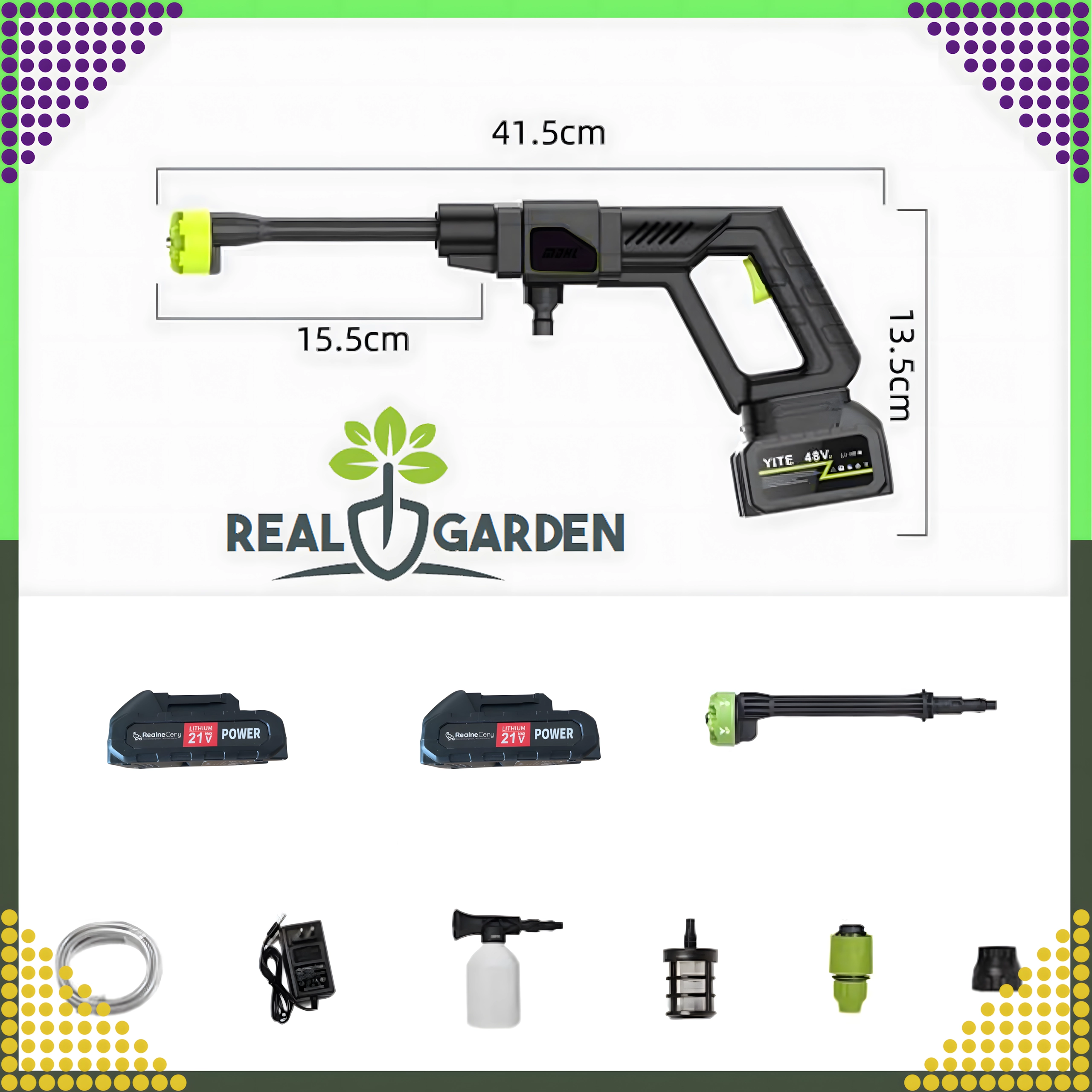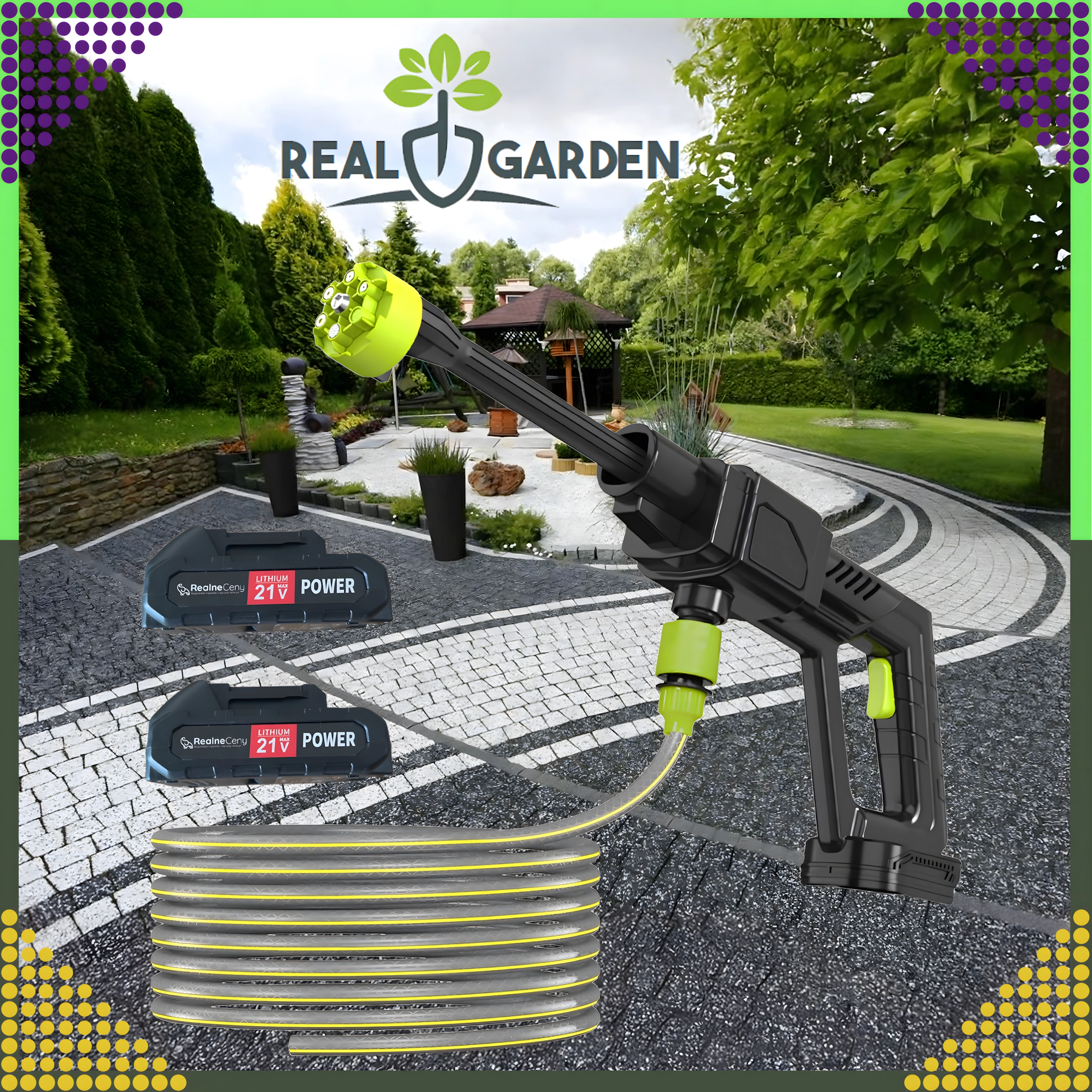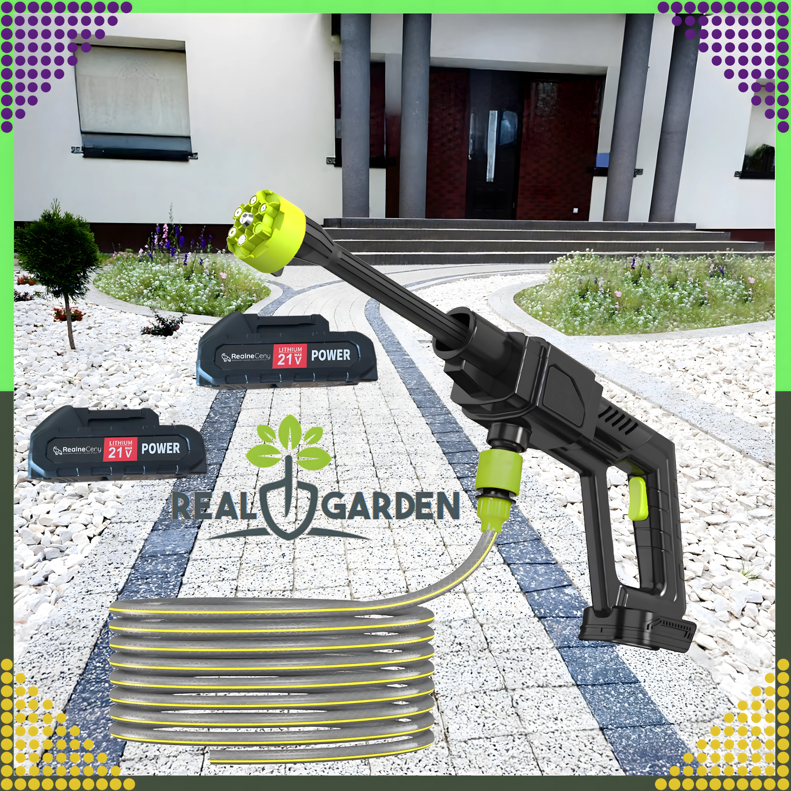 Bežična tlačna peračica olakšava redovito čišćenje oko kuće, garaže i vrta. Idealna je za pranje automobila, terasa i staza, čišćenje fasade, ograda i vrtnog alata. Zahvaljujući baterijskom napajanju možete je udobno ponijeti kamo god treba brzo i učinkovito očistiti površinu.