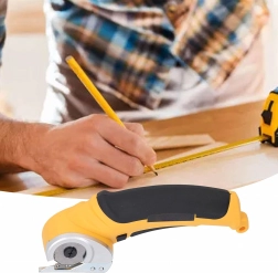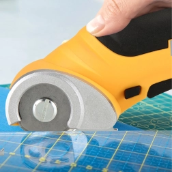 Kružna oštrica sa zaštitnim poklopcem osigurava gladak i čist rez tekstila, kože i kartona. Idealno za duge ravne rezove uz ravnalo.