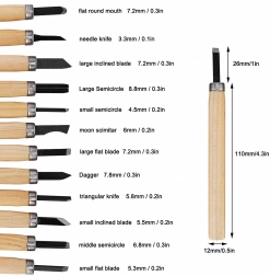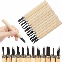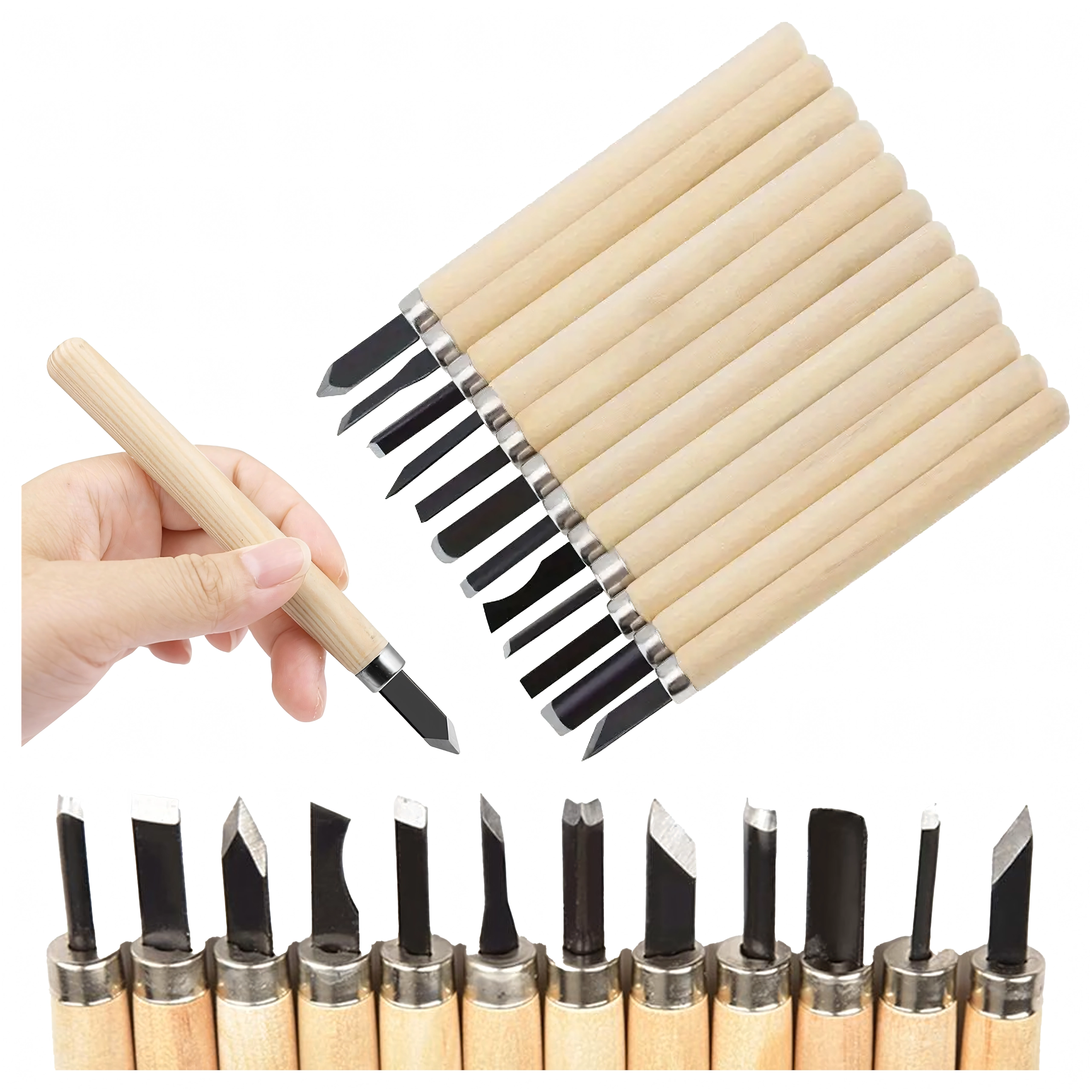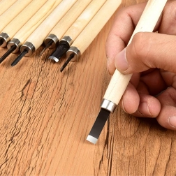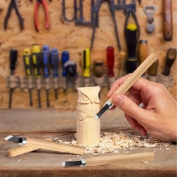 Idealno za početnike i napredne: od finog ukrašavanja, izrade reljefa do izrade figurica, žigova i dekoracija. Zahvaljujući različitim oblicima oštrica savladat ćete precizne rezove, V-utorе, udubine i ravne zareze na drvu, linoleumu i drugim mekim materijalima.