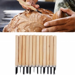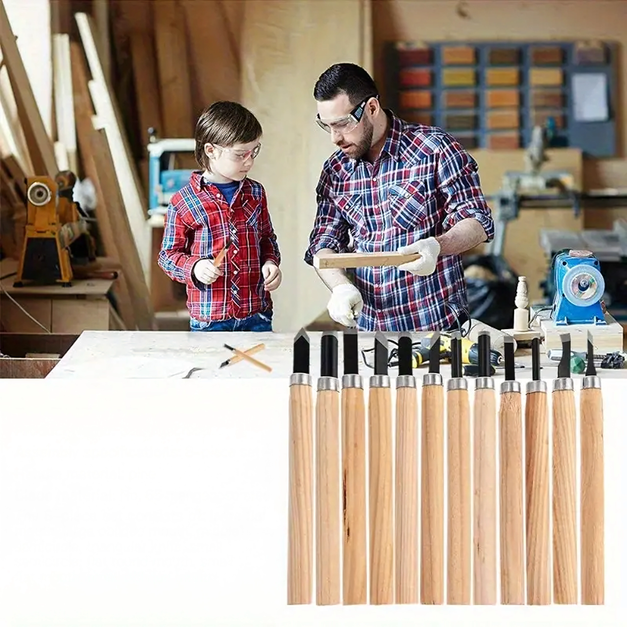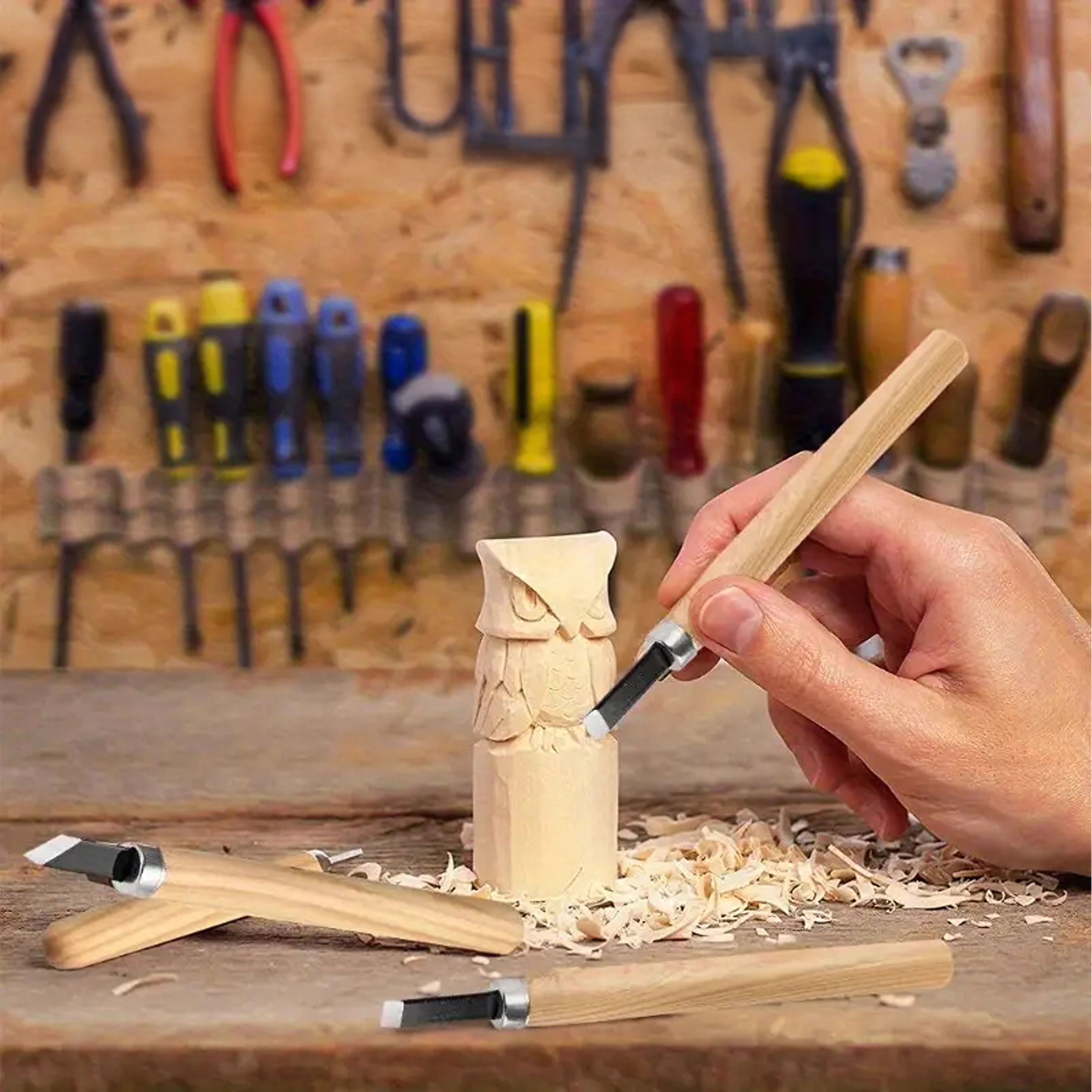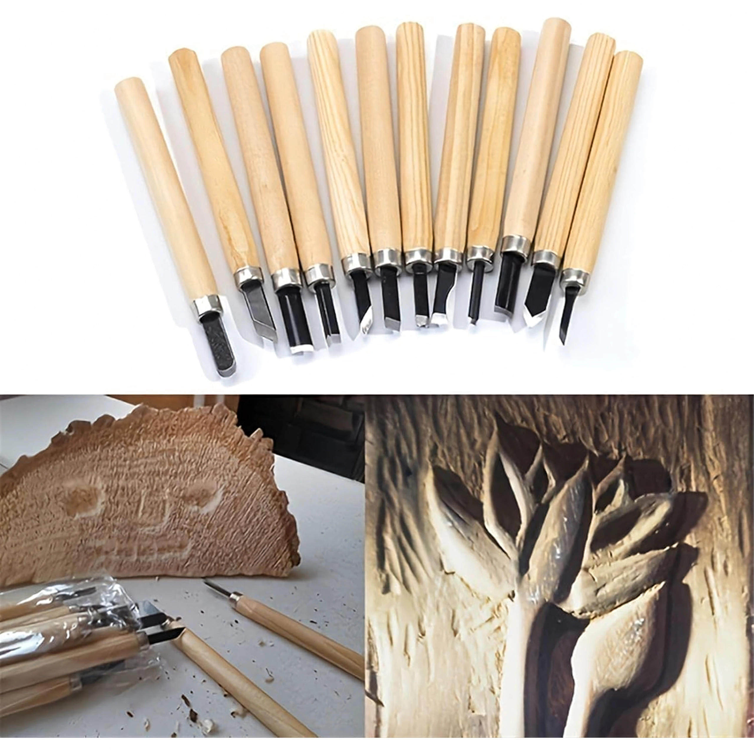 Set uključuje ravna, V i U dlijeta za detalje, udubljenja i ravno skidanje materijala – sve što trebate za rezbarske projekte.