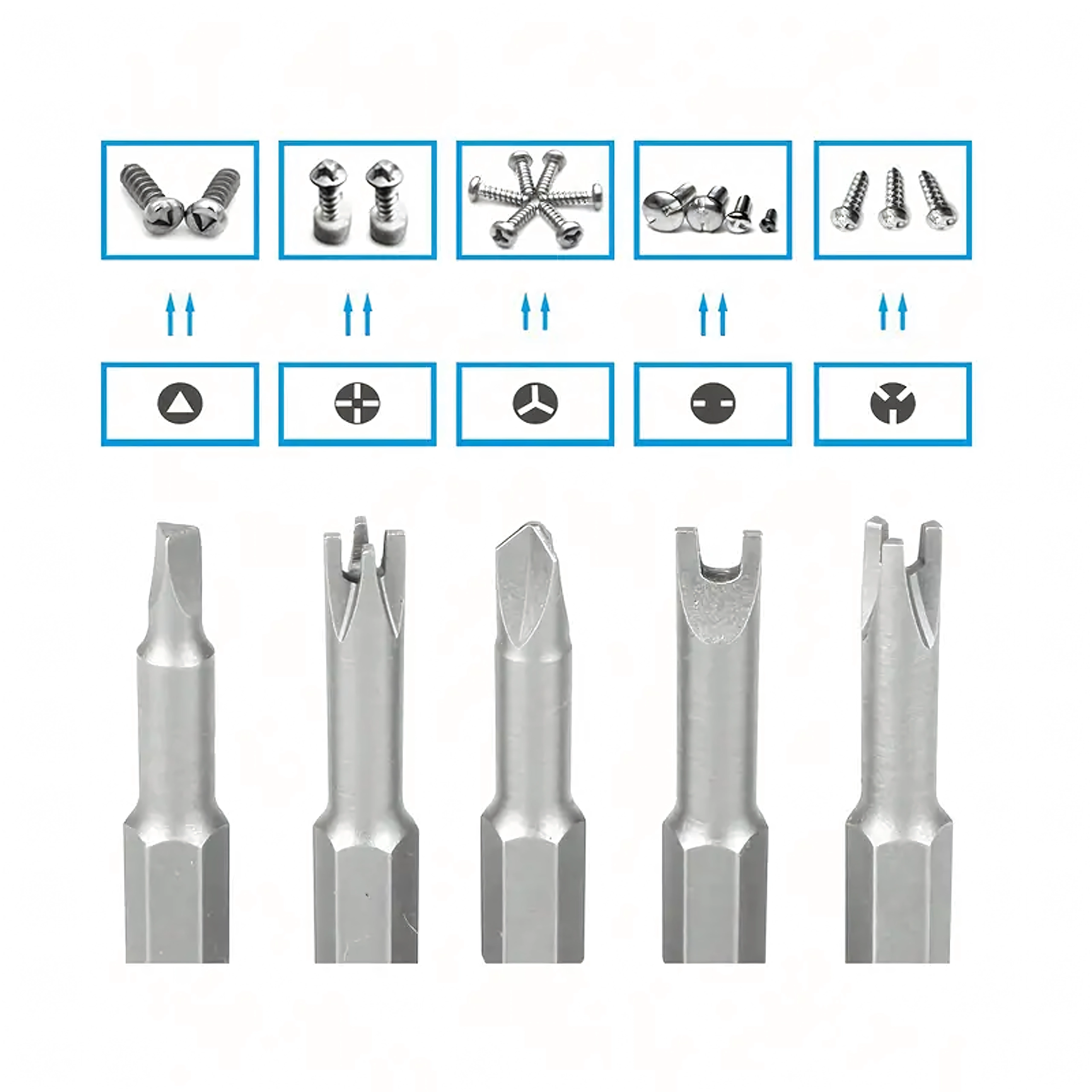 Kompatibilni s većinom ručnih odvijača i akumulatorskih bušilica zahvaljujući standardnom prihvatu. Set je idealan za servis elektronike, manje popravke namještaja, radove na kućanskim uređajima i sigurnosnim elementima, gdje je potrebna posebna profilacija vijaka.