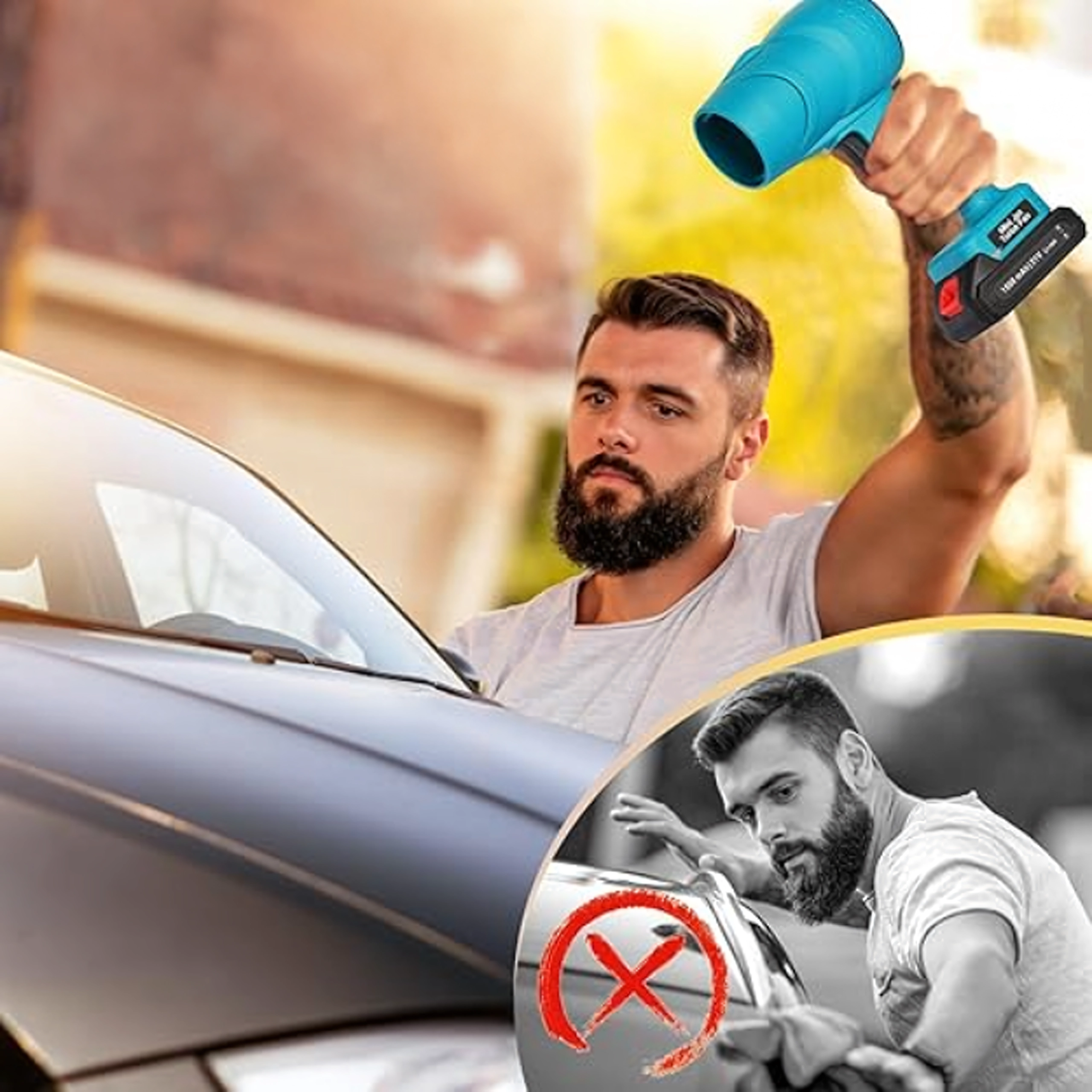 Ovaj bežični puhač koristi tehnologiju turbopuhala za trenutno fokusiranje i visoku brzinu struje zraka. Lako skuplja suho lišće s nogostupa i prilaznih puteva, otpuhuje prašinu iz kutova i s alata te brzo pomaže pri sušenju površina, primjerice nakon pranja automobila.
