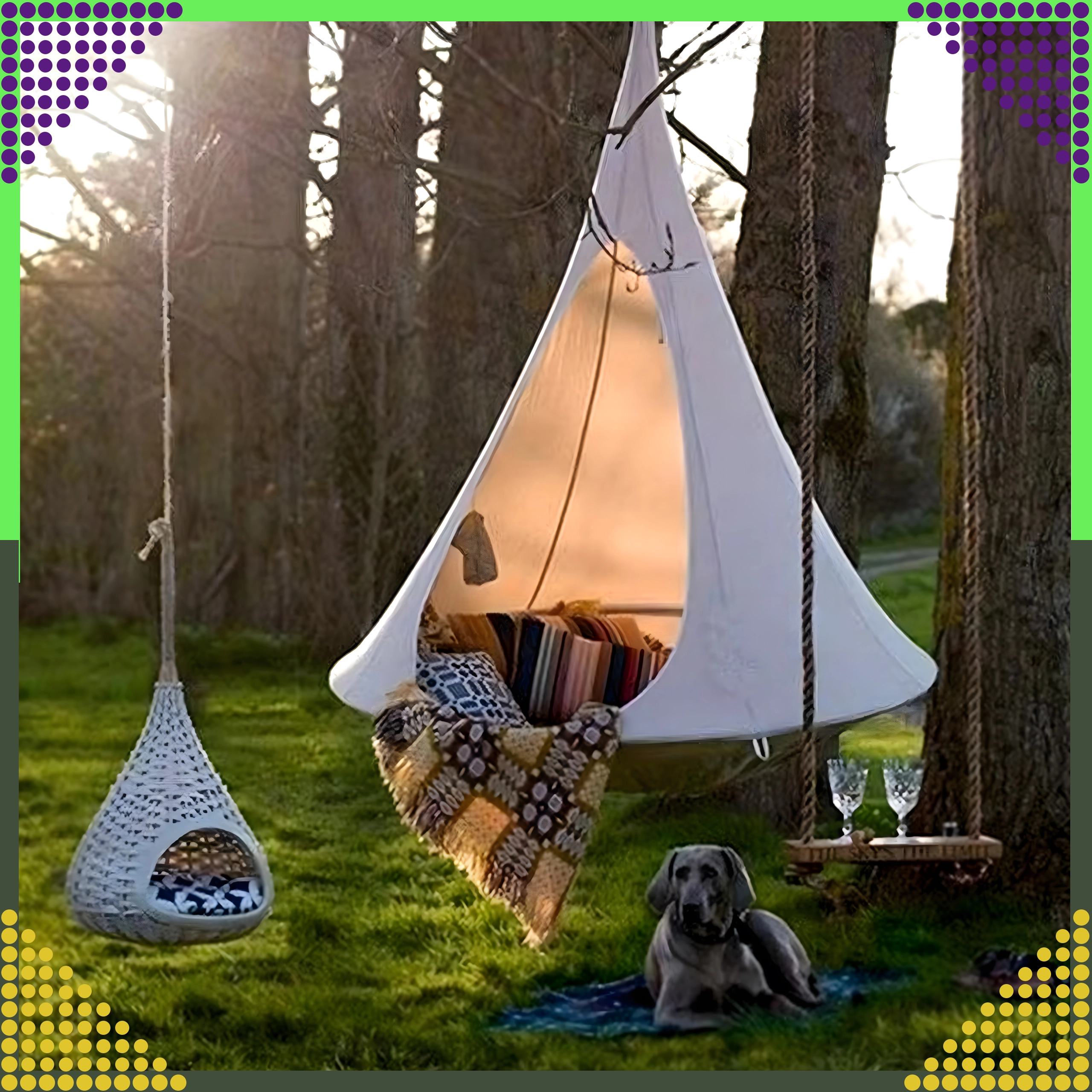 - Viseća hamaka / kokon‑viseća fotelja