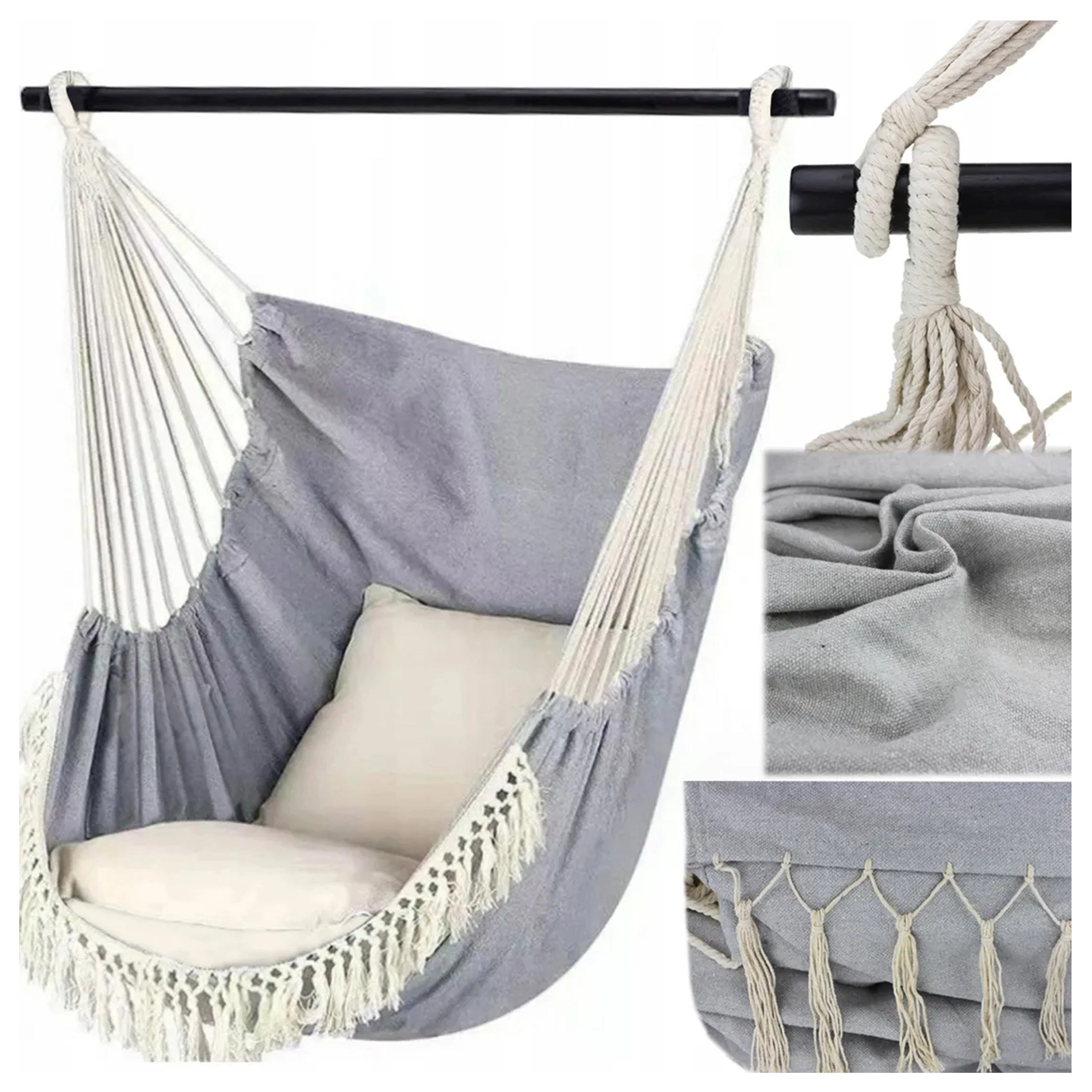 Elegantna tamnosiva boja lako se uklapa u moderan i boho namještaj. Nježno njihanje u hammocksjedi pomaže smanjiti napetost, umiriti um i donosi ugodan odmor za cijelu obitelj.