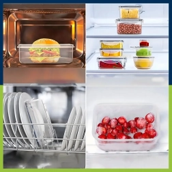 Posude su izrađene od kvalitetne plastike bez BPA, pogodne za kontakt s hranom. Zahvaljujući stogivom i ugnijezdivom rješenju štede prostor u kuhinji, hladnjaku i torbi za put. Idealno za dom, posao, školu i piknik.