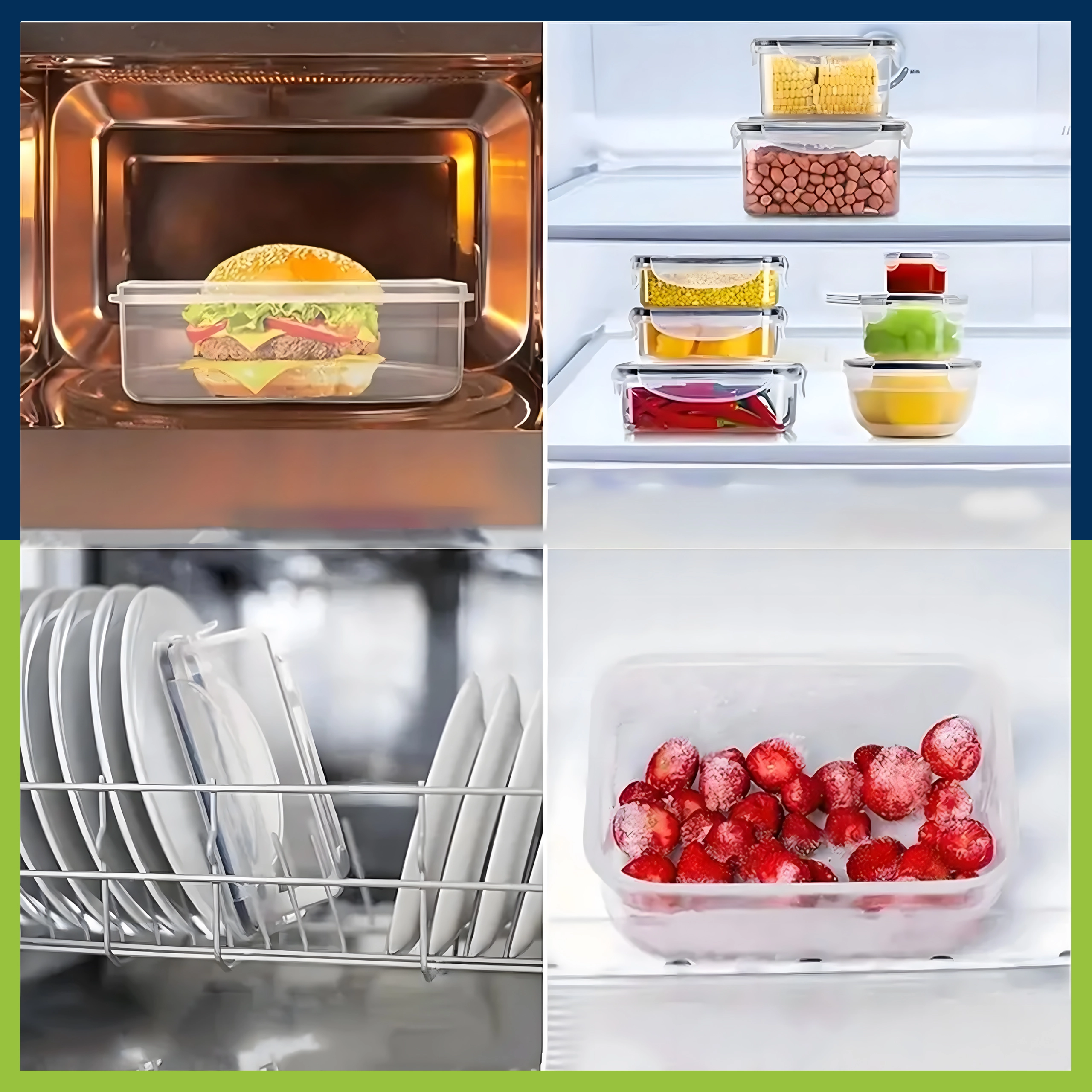 Ovaj svestrani set sadrži manje i veće posude za užine, voće, povrće, ostatke jela i pripremu obroka. Prozirne stijenke olakšavaju brzu identifikaciju sadržaja, a čvrsti poklopci sa zasunima osiguravaju pouzdanu nepropusnost protiv curenja tekućina i širenja mirisa.