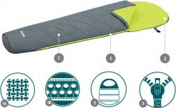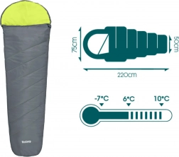 Šuplje vlakno Hollow Fiber 170 g/m² učinkovito zadržava toplinu i osigurava komfornu temperaturu u rasponu +6 do +10 °C s ekstremnom granicom do -7 °C. Zahvaljujući težini od samo 0,8 kg i kompaktnim dimenzijama nakon pakiranja odlično je prikladna za trekking, kampiranje i festivale. U pakiranju se nalazi i praktična transportna vreća.