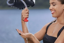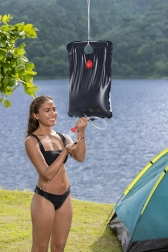 Zahvaljujući kapacitetu od 20 litara osigurava dovoljno vode za više kratkih tuševa. Tuš ima ojačanu vješalicu za sigurno učvršćivanje na granu, kuku ili uže te tuš crijevo s nastavkom za udobno upravljanje protokom. Nakon ispuštanja sklapa se ravno i ne zauzima mjesto u ruksaku.
