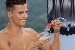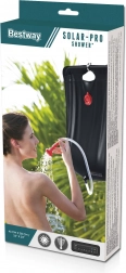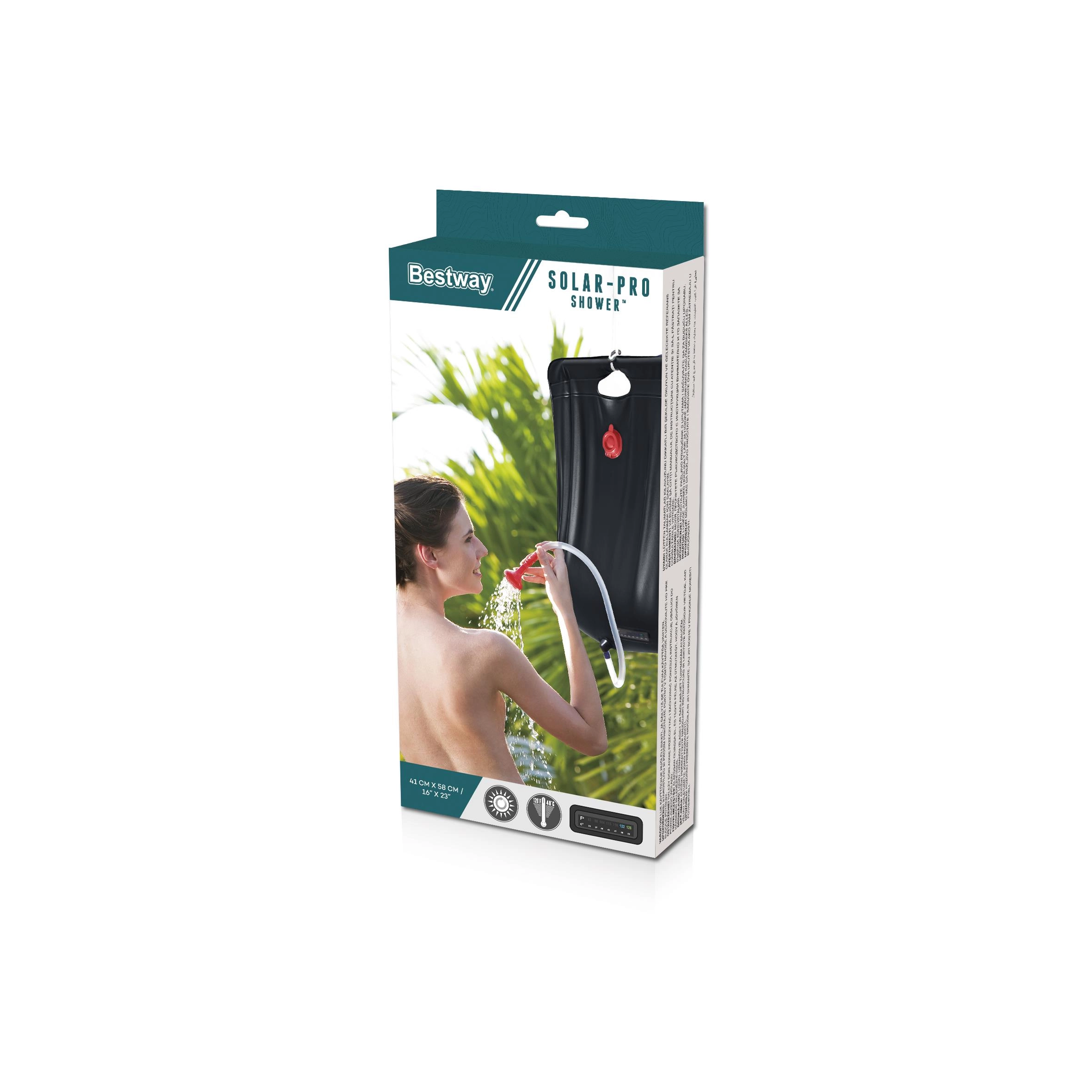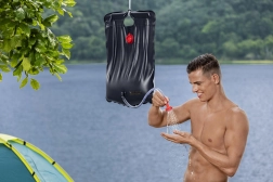 Solarni tuš Bestway idealan je za kampiranje, plažu, vikendicu i treking bez infrastrukture. Crni PVC upija sunčeve zrake i zagrijava vodu na ugodnu temperaturu, pa se možete otuširati ili isprati posuđe i na udaljenim mjestima. Integrirani termometar omogućuje vam jednostavnu kontrolu postignute temperature.