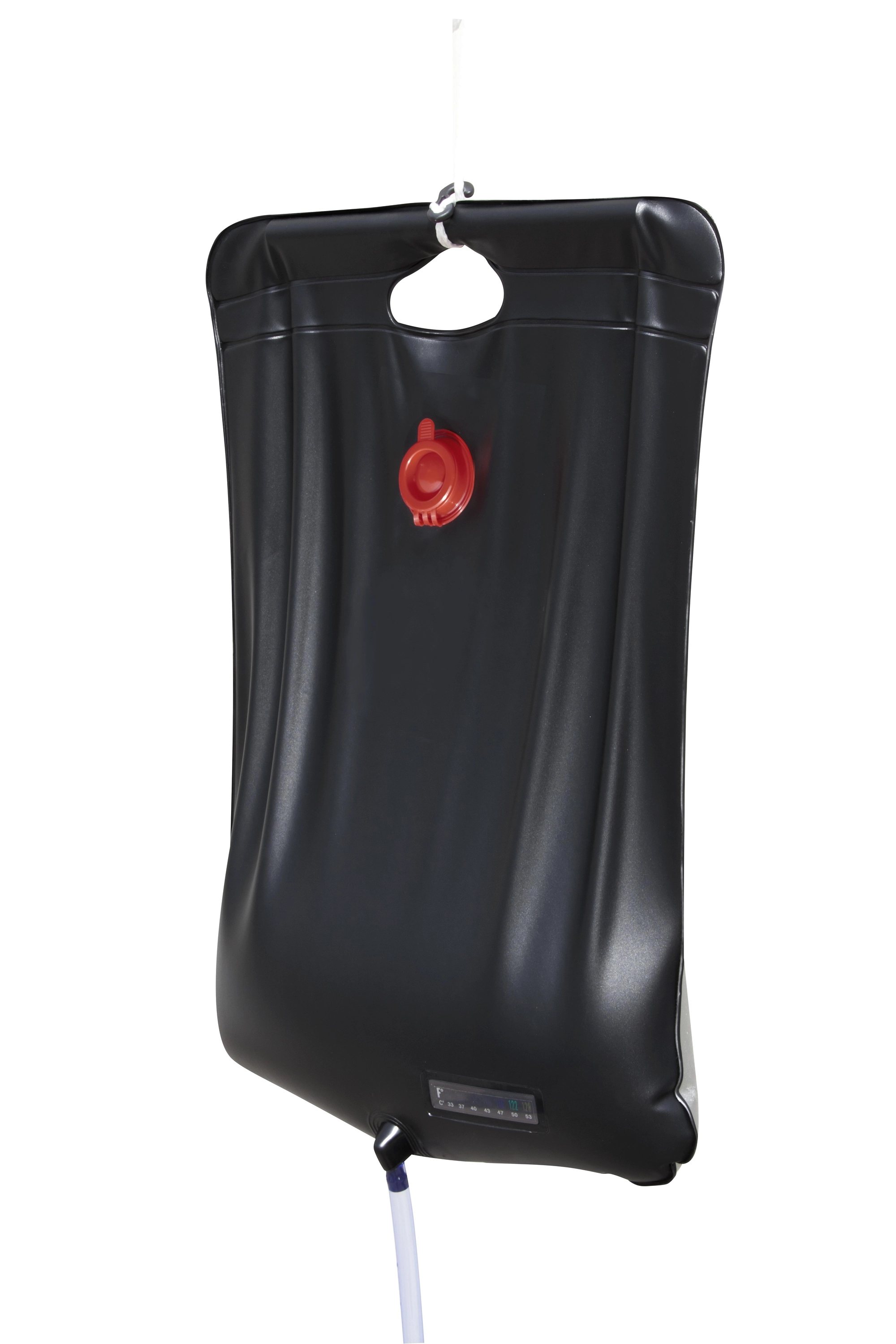 Crna površina učinkovito apsorbira sunčevo zračenje i zagrijava do 20 l vode na približno 40 °C – idealno za ugodan tuš u kampu ili kraj vode.