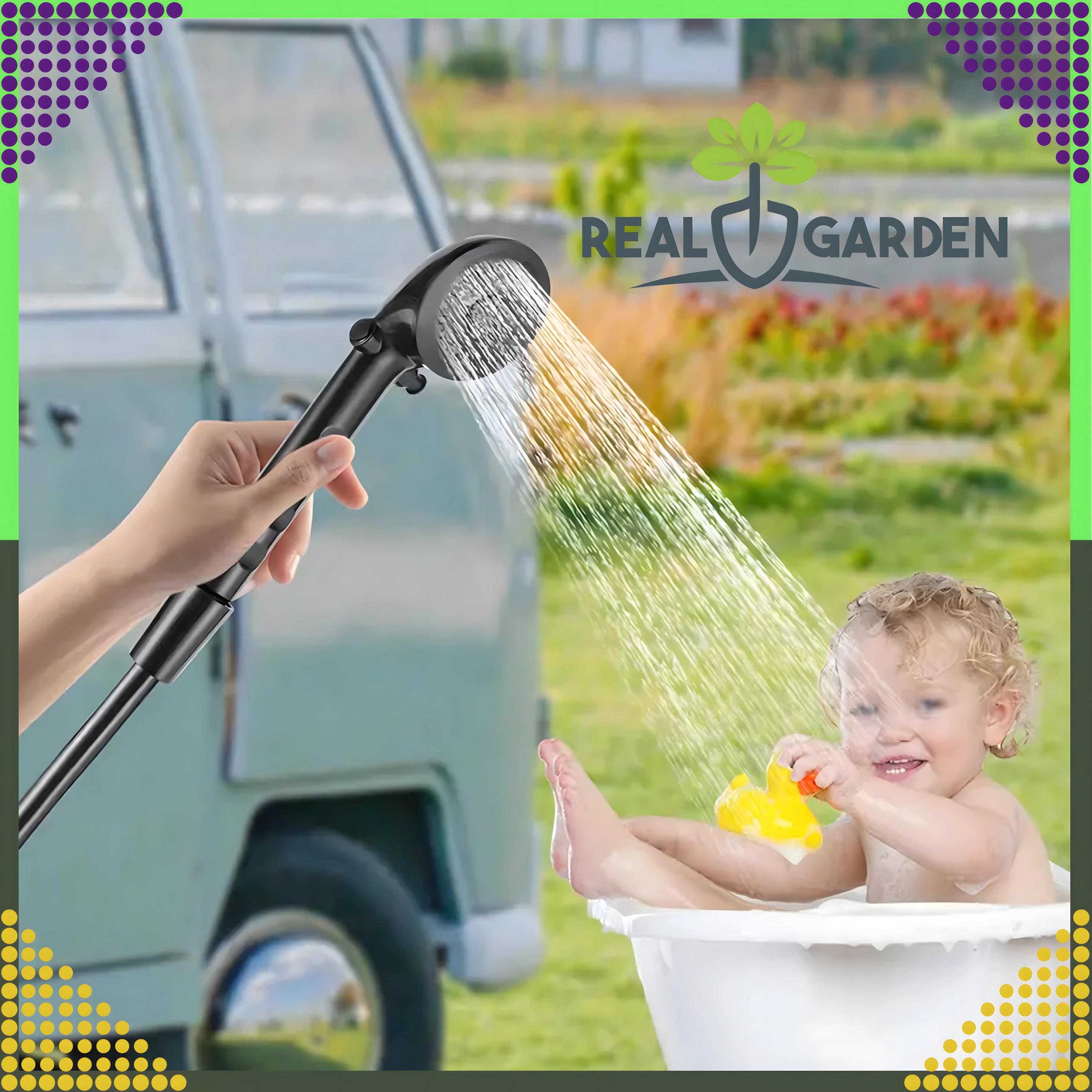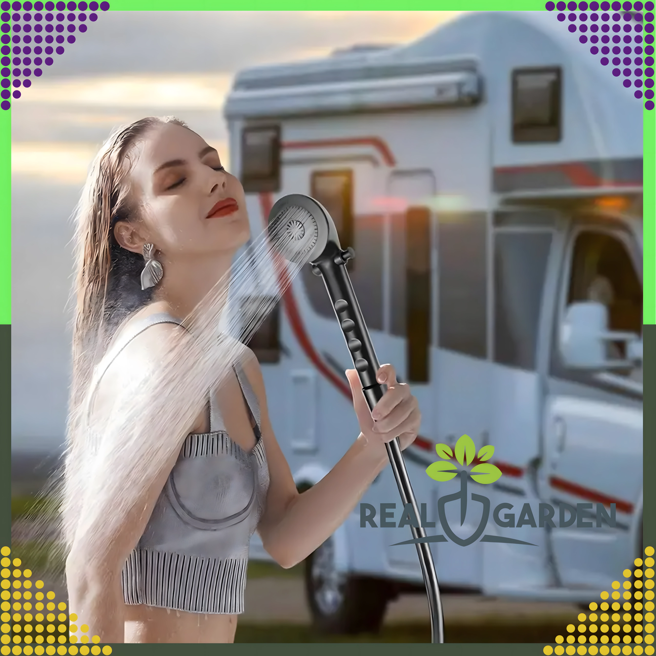 Integrirani prekidač protoka pomaže štedjeti vodu, što je u kampu ili na brodu ključno. Robusna ABS konstrukcija odolijeva svakodnevnoj upotrebi, a držač s 3 položaja omogućuje udobno postavljanje i stabilno učvršćivanje tuša.