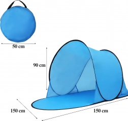 Integrirano dno i otvoreni prednji dio osiguravaju ugodan ulaz i dobru ventilaciju, a bočne stranice učinkovito štite od vjetra i sunca. Šator je idealan za obitelji s djecom, za plažu, park, vrt ili piknik.