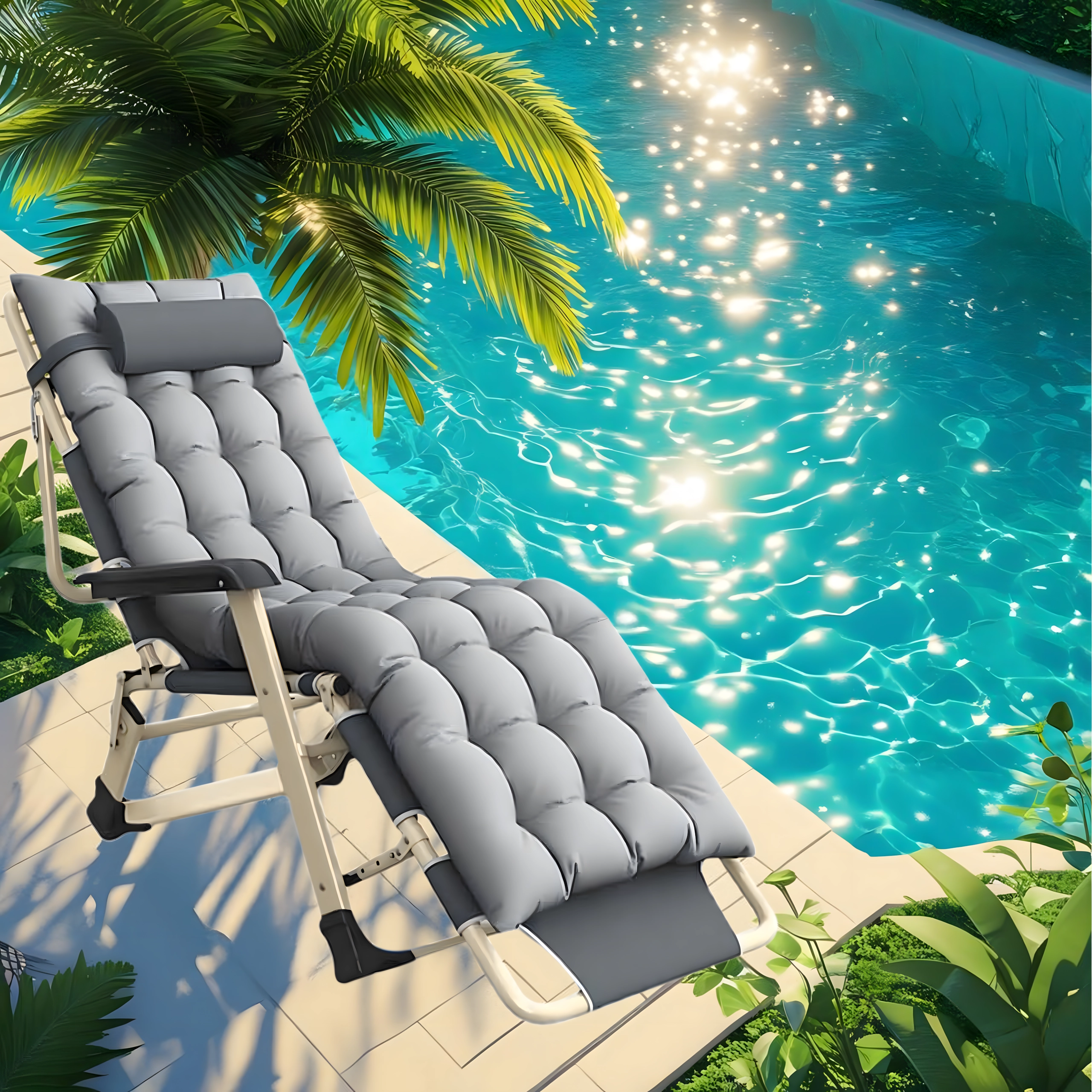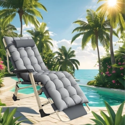 Praktična i stilska ležaljka za vaš odmor. Debelo podstavljanje s odvojivim jastučićem pruža ugodnu potporu glavi i leđima, dok stabilna sklopiva konstrukcija osigurava sigurno i udobno ležanje kod kuće i na otvorenom. Materijali zahtijevaju minimalno održavanje i otporni su na uobičajene vremenske utjecaje.