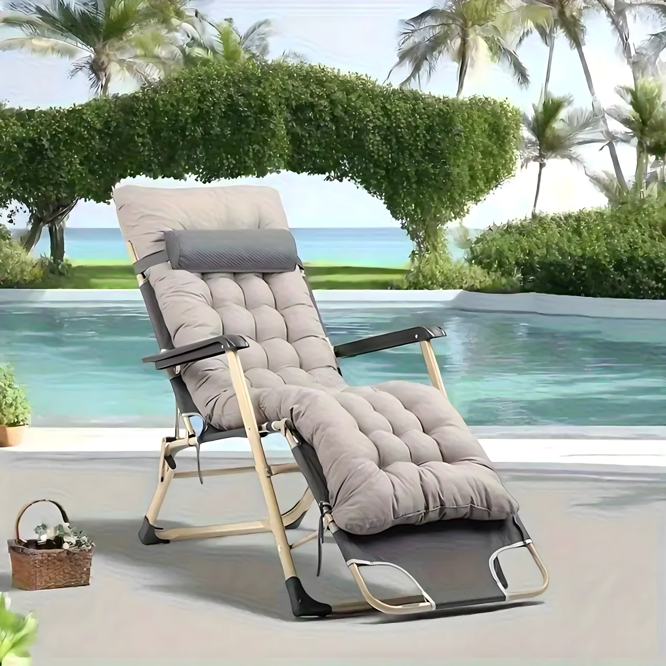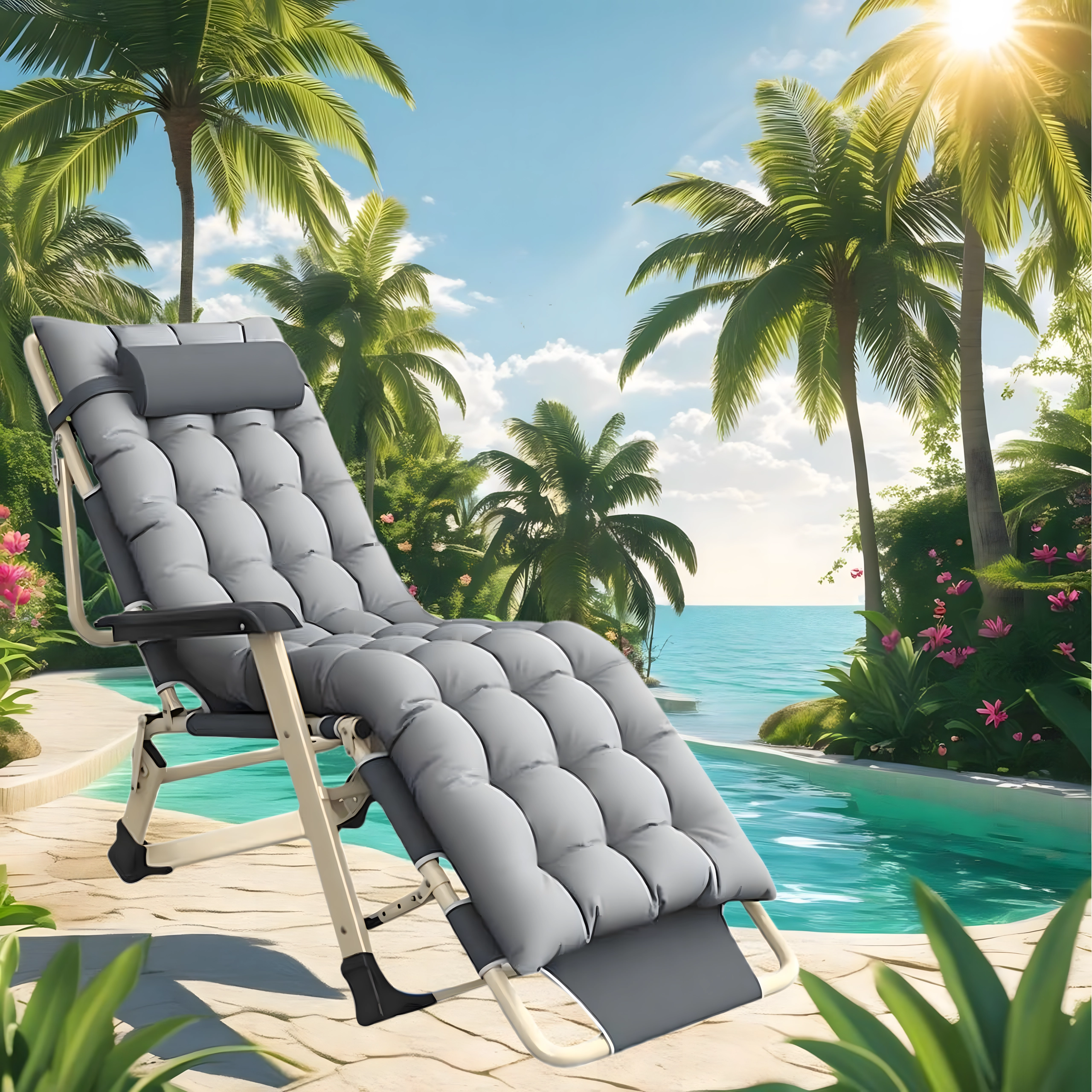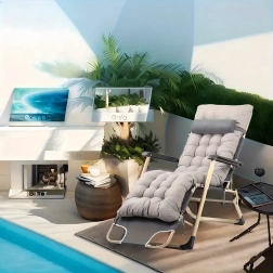Zahvaljujući podesivom položaju naslona za leđa i noge lako ćete pronaći idealan položaj za čitanje, sunčanje ili kratki san. Nasloni za ruke i produženi oslonac za noge povećavaju udobnost, a prijenosna sklopiva konstrukcija olakšava pohranu i prijevoz.