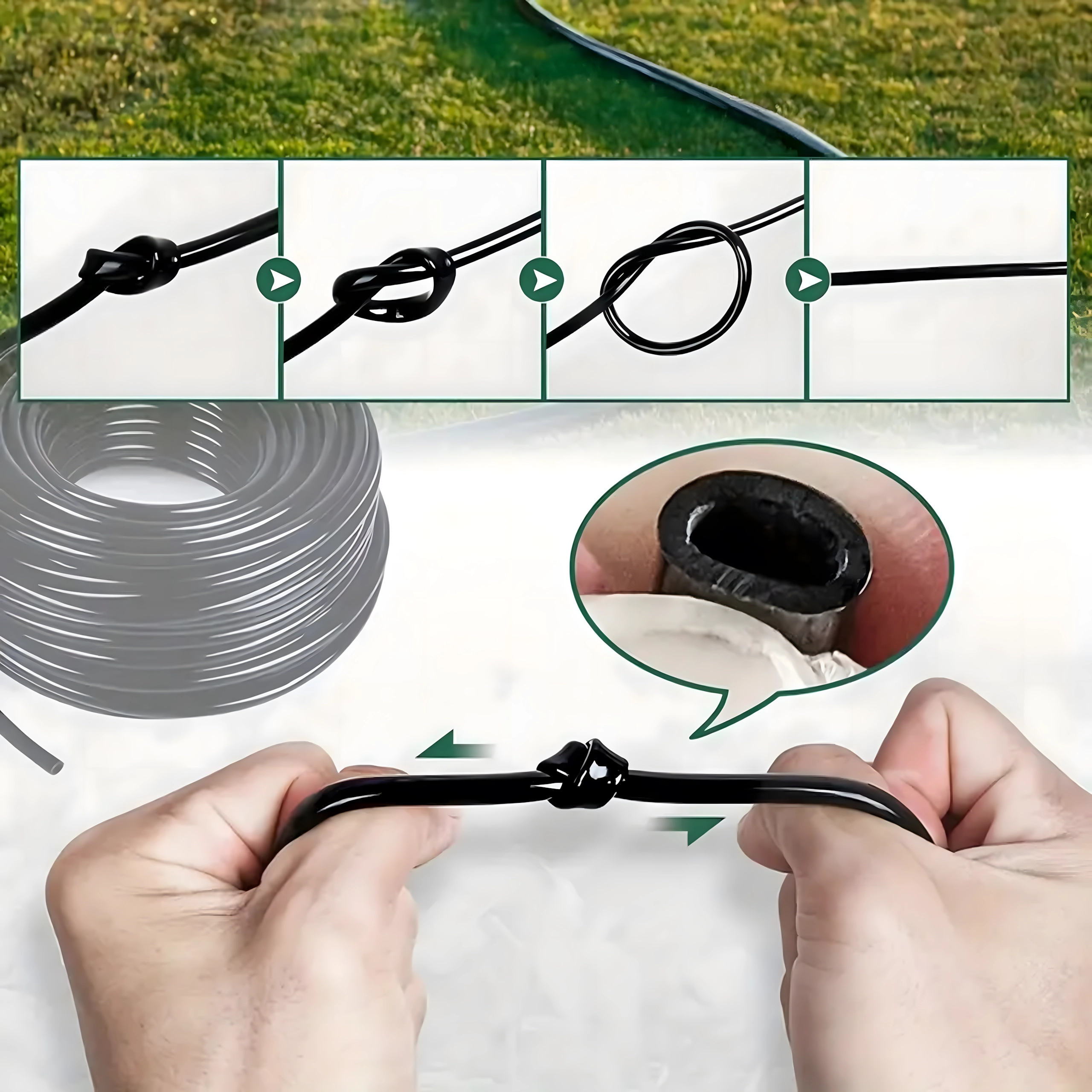 Glatki, elastični materijal omogućuje jednostavno vođenje crijeva između redova i dug vijek trajanja i pri vanjskoj uporabi.