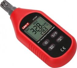 UNI‑T UT333 je praktičan mjerač za brzu kontrolu mikroklime. Mjeri temperaturu u rasponu od −10 do 60 °C i vlagu 0–100 % RH s točnošću prikladnom za svakodnevnu i profesionalnu upotrebu. Kompaktno kućište, mala težina i pozadinski osvijetljen zaslon osiguravaju ugodnu upotrebu i u lošijim svjetlosnim uvjetima.