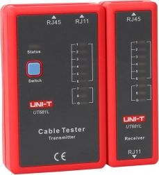 UNI-T UT681L je praktičan tester za brzu dijagnostiku ethernet i telefonskih vodova. Podržava konektore RJ45 i RJ11 te pomoću LED dioda (LED1–LED8, LED_G) trenutno prikazuje stanje svake žice, uključujući oklop. Možete odabrati brzi ili spori način testiranja prema potrebi.
