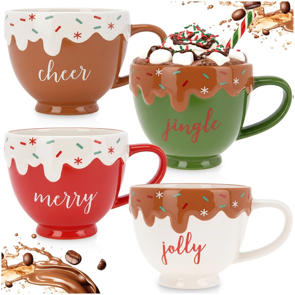 Ovaj set od četiri blagdanske šalice unosi u vašu kuhinju radosnu atmosferu Božića. Svaku šalicu krasi efekt „kapajuće glazure” s kolor posipom i veseo natpis, pa su ne samo praktičan nego i dekorativan dodatak.