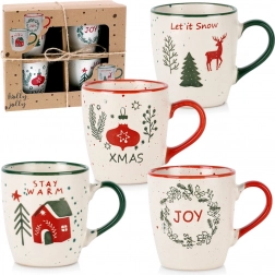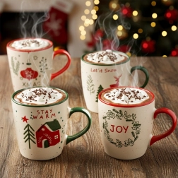 Uživajte u zimskim trenucima uz šalice koje griju na prvi pogled. Kamenina s crvenim i zelenim akcentima djeluje toplo i blagdanski, dok ergonomsko uho osigurava udobno držanje pri ispijanju kave, čaja ili vruće čokolade. Svaki komad ima jedinstveni motiv pa se set lijepo ističe na postavljenom stolu i kao dekoracija.