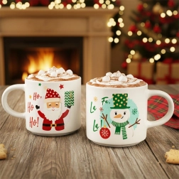 Stilizan set dviju božićnih šalica od kvalitetnog porculana u bijeloj boji uljepšat će svaki zimski dan. Šalice s veselim motivima DJEDA BOŽIĆNJAKA i snjegovića savršene su za svakodnevnu upotrebu i svečane trenutke za stolom. Zahvaljujući ergonomskoj dršci ugodno leže u ruci i izvrsne su za vruće napitke.