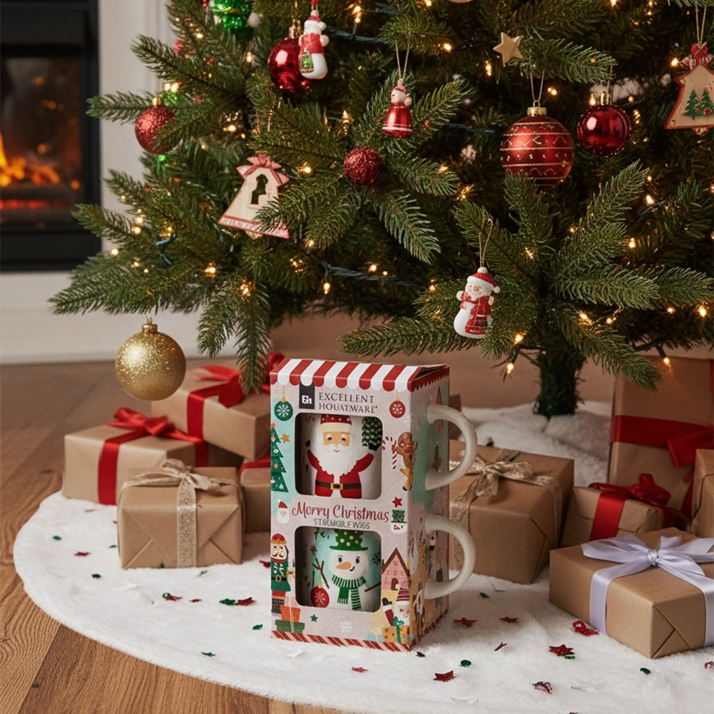 Svaka šalica ima zapremninu 400 ml i praktične dimenzije, prikladna je za perilicu posuđa i mikrovalnu pećnicu. Set je pakiran u estetsku poklon-kutiju, spreman za darivanje – idealno za Svetog Nikolu ili pod bor.