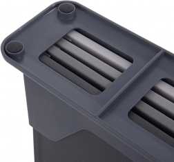 Kompaktno postolje s profiliranim utorima drži daske uspravno, ima pjenaste podloge protiv klizanja i štiti radnu plohu od ogrebotina.