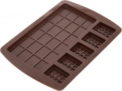 Kalup možete sigurno koristiti u pećnici, mikrovalnoj pećnici, hladnjaku i zamrzivaču. Idealan je za deserte koji zahtijevaju hlađenje i zagrijavanje. Izradit ćete jednu veliku pločicu dimenzija 15 × 7,5 cm i pet mini pločica 3,5 × 2,5 cm, debljina čokolade je približno 0,5 cm.