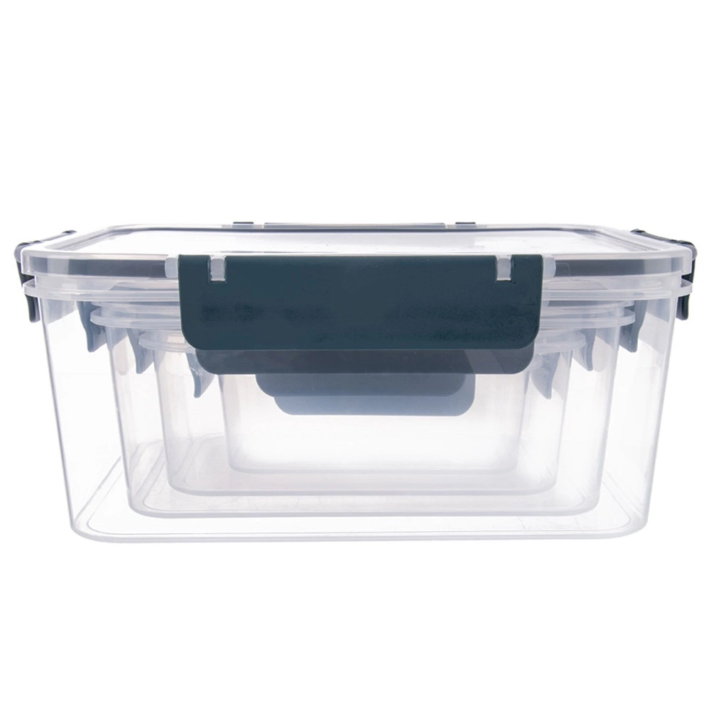 Poklopci s četiri čvrste kopče i integriranom silikonskom brtvom osiguravaju pouzdanu nepropusnost i svježinu. Posudice su bez štetnog BPA, otporne na temperature od -25 °C do +95 °C, pa ih možete zamrzavati, zagrijavati u mikrovalnoj pećnici (bez poklopca) i prati u perilici posuđa. Nakon uporabe lako ih ugnijezdite jednu u drugu i uštedite prostor u ormariću.