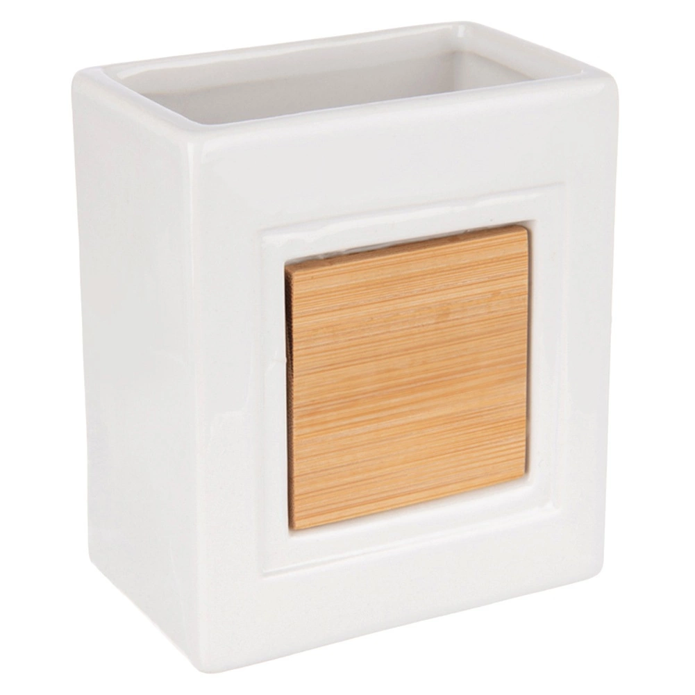 - Moderan minimalistički dizajn – bijela keramika s prirodnim drvom.