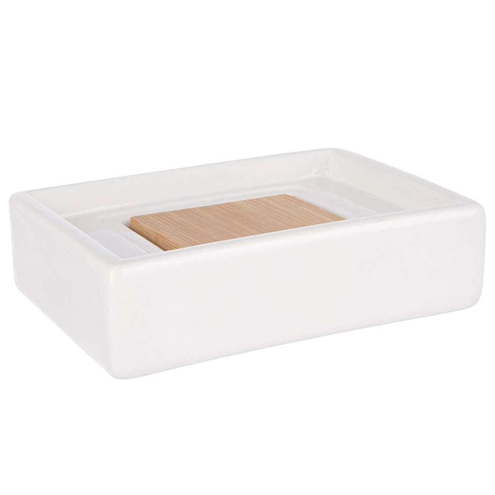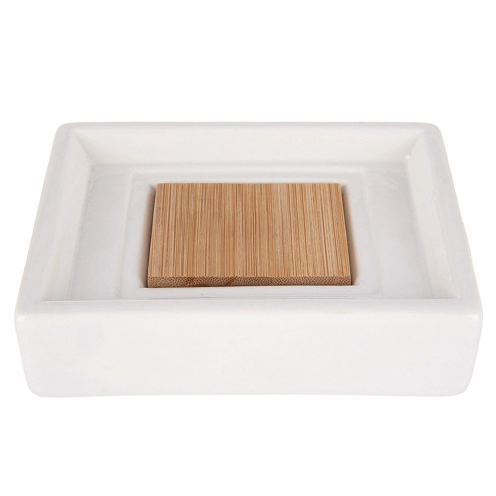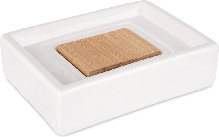 Ova praktična posudica za sapun spaja sjajnu keramiku (dolomit) i prirodni bambus za učinkovito otjecanje vode i uredan izgled vaše kupaonice ili kuhinje. Zahvaljujući povišenom drvenom umetku sapun ne leži u vodi, brže se suši i dulje traje.