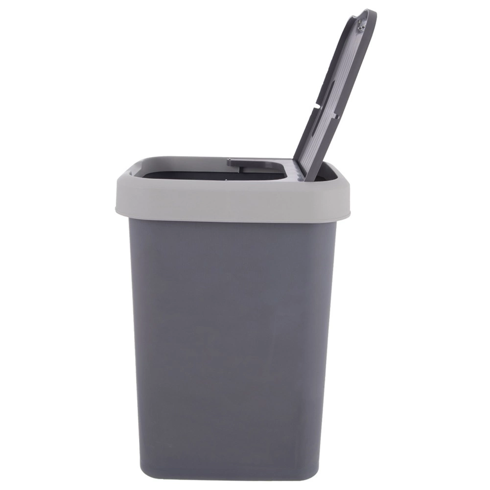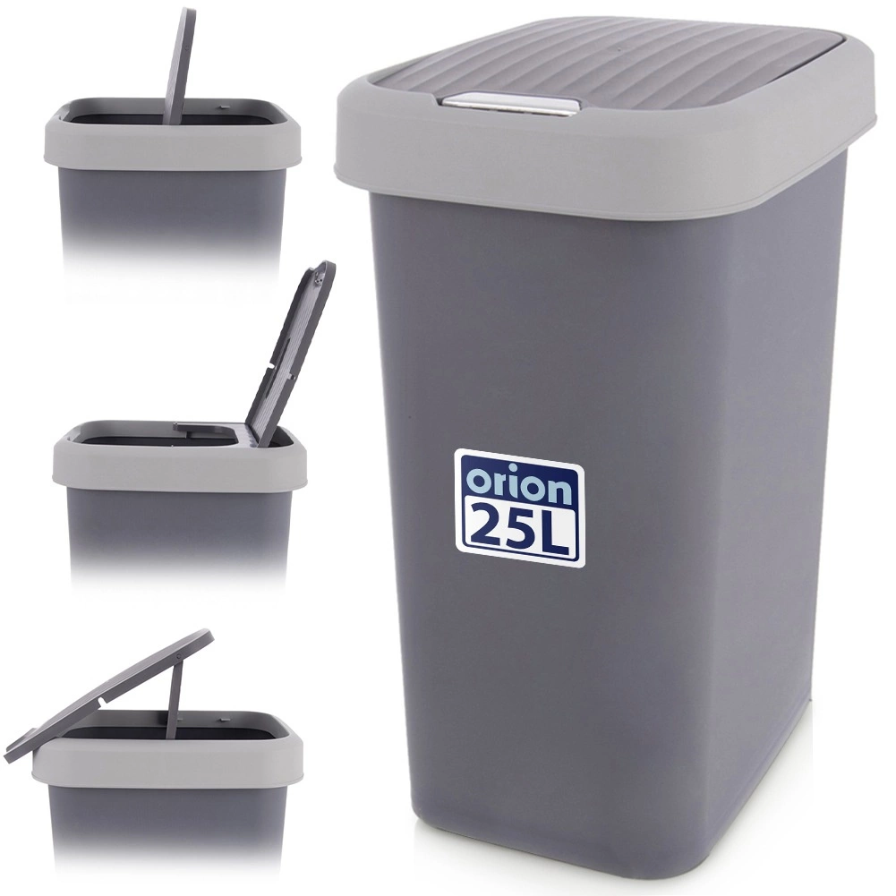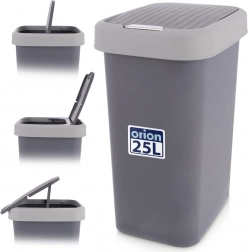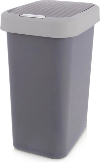 Kanta za otpad zapremine 25 l idealan je izbor za kućanstva i urede. Čvrsta plastična izvedba u dvije nijanse sive izgleda moderno i lako se čisti. Njihajući poklopac učinkovito ograničava širenje mirisa, a širok otvor olakšava odlaganje otpada i zamjenu vrećica.