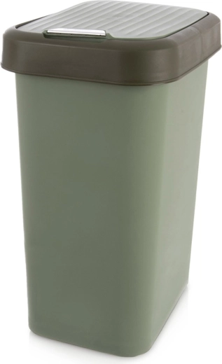 Izdržljiva i lagana kanta od kvalitetne plastike u zelenoj nijansi pruža čist izgled i jednostavno održavanje. Sklopivi poklopac s pokretnom klapnom omogućuje ubacivanje otpada s različitih strana te istodobno smanjuje širenje neugodnih mirisa. Zahvaljujući vitkom obliku, kanta se dobro uklapa i u manje prostore.