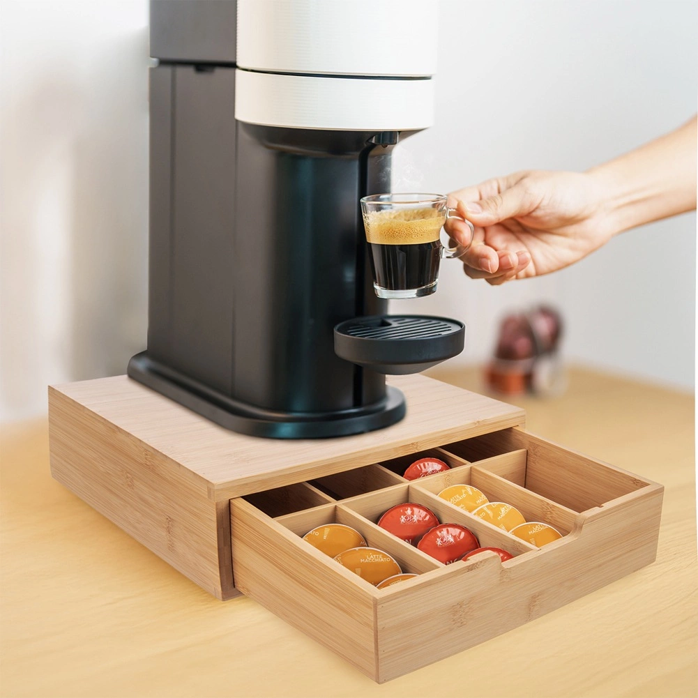 Organizator nosi aparat za kavu i istovremeno skriva kapsule u ladici – sve pregledno i nadohvat ruke.
