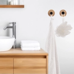 Set od 2 samoljepljive kukice pametno je rješenje za uredno odlaganje ručnika, ogrtača, krpa, torbi i dodataka. Prirodni bambus u kombinaciji s crnim metalom stvara bezvremenski, minimalistički akcent koji se uklapa u moderne i skandinavske interijere. Ugradnja bez alata štedi vrijeme, zidove i pločice.