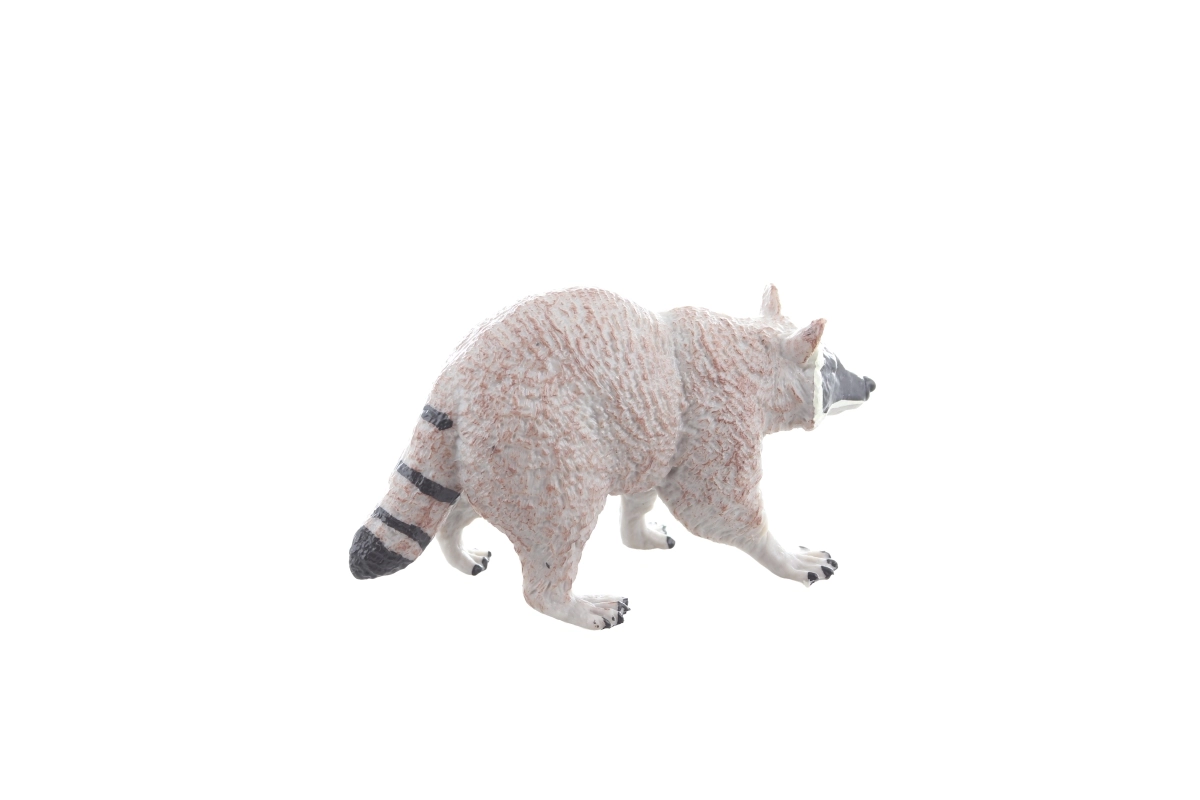 Detaljna tekstura krzna, precizno oslikana maska na licu i prugasti rep donose autentičan izgled rakuna za edukativnu i slobodnu igru.