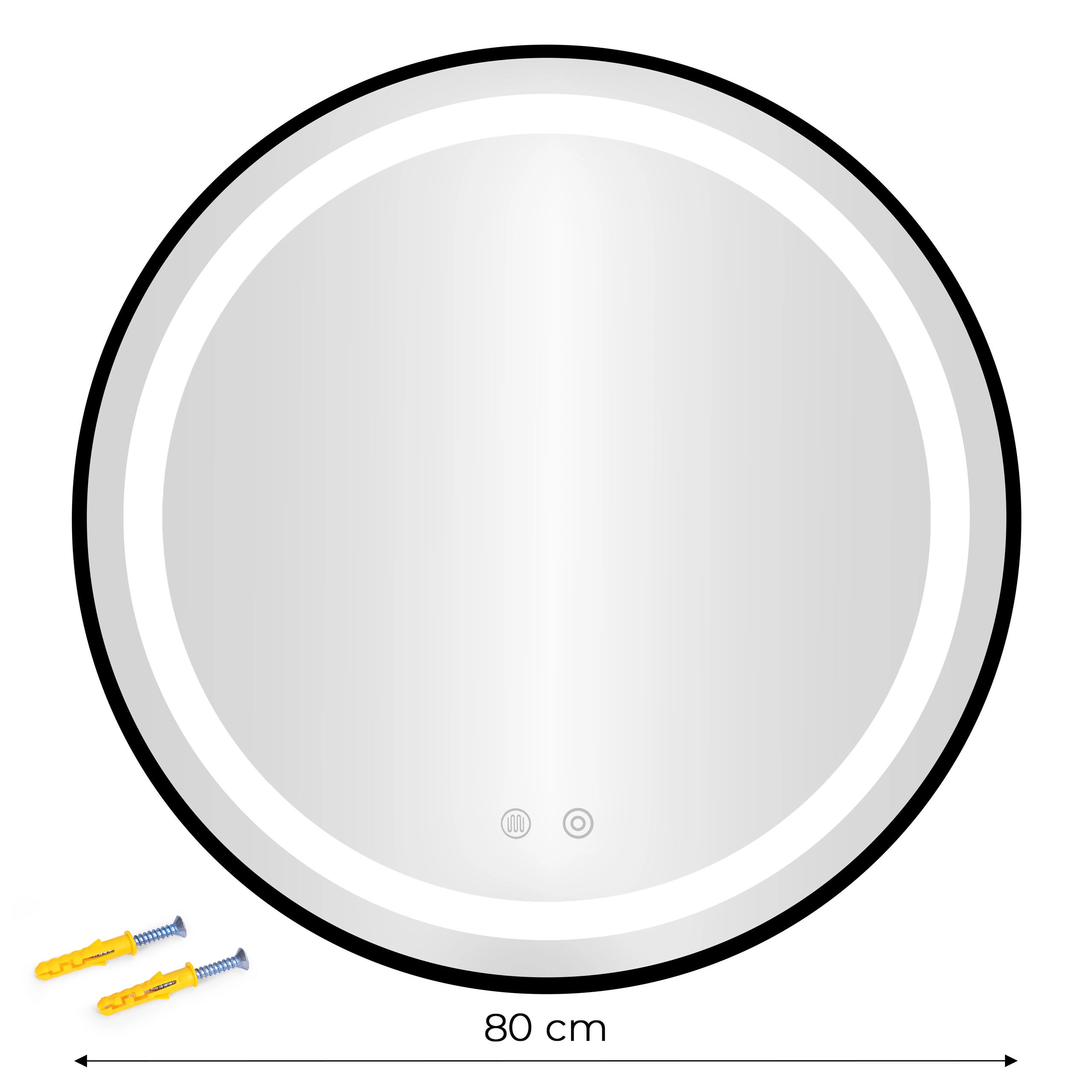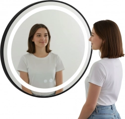 Stilsko zidno ogledalo MODERNHOME odlično će upotpuniti moderne i klasične interijere. Njegov suptilan prsten LED pozadinskog osvjetljenja naglašava linije kupaonice i pruža ugodnu svjetlost bez zasljepljivanja. Promjer 80 cm pruža dovoljno površine za ugodne svakodnevne rituale.