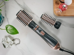 Mješovita vlakna nježno hvataju pramenove bez povlačenja, a rotirajuća glava daje volumen od korijena, oblikuje glatke valove i elegantne kovrče u nekoliko minuta.