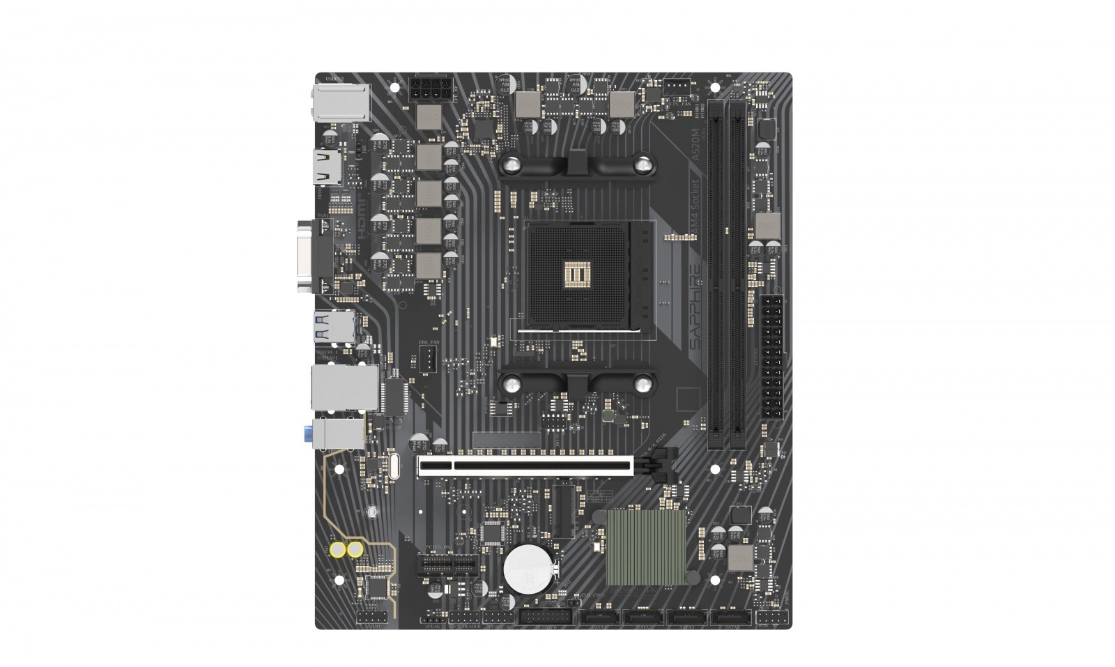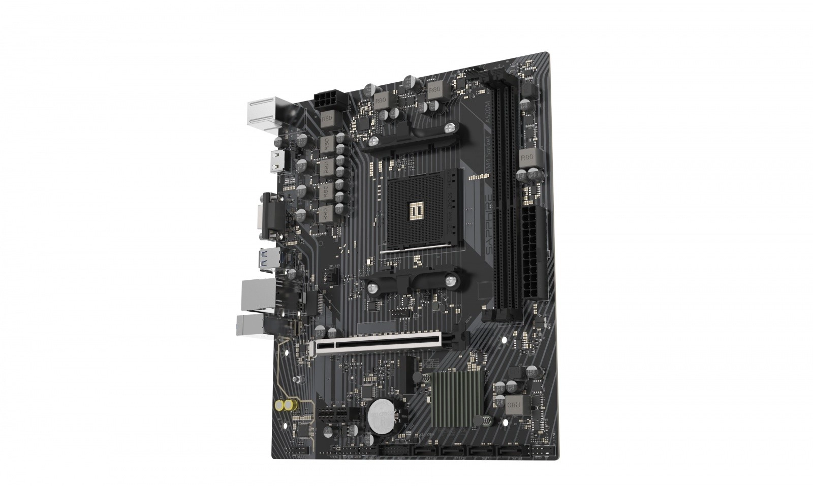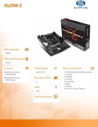 SAPPHIRE A520M-E je mATX matična ploča bazirana na čipsetu AMD A520 koja donosi stabilnu platformu za AMD AM4 procesore. Nudi uravnoteženu kombinaciju performansi, funkcija i pouzdanosti za svakodnevni rad i zabavu.