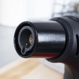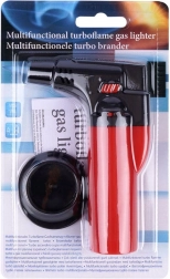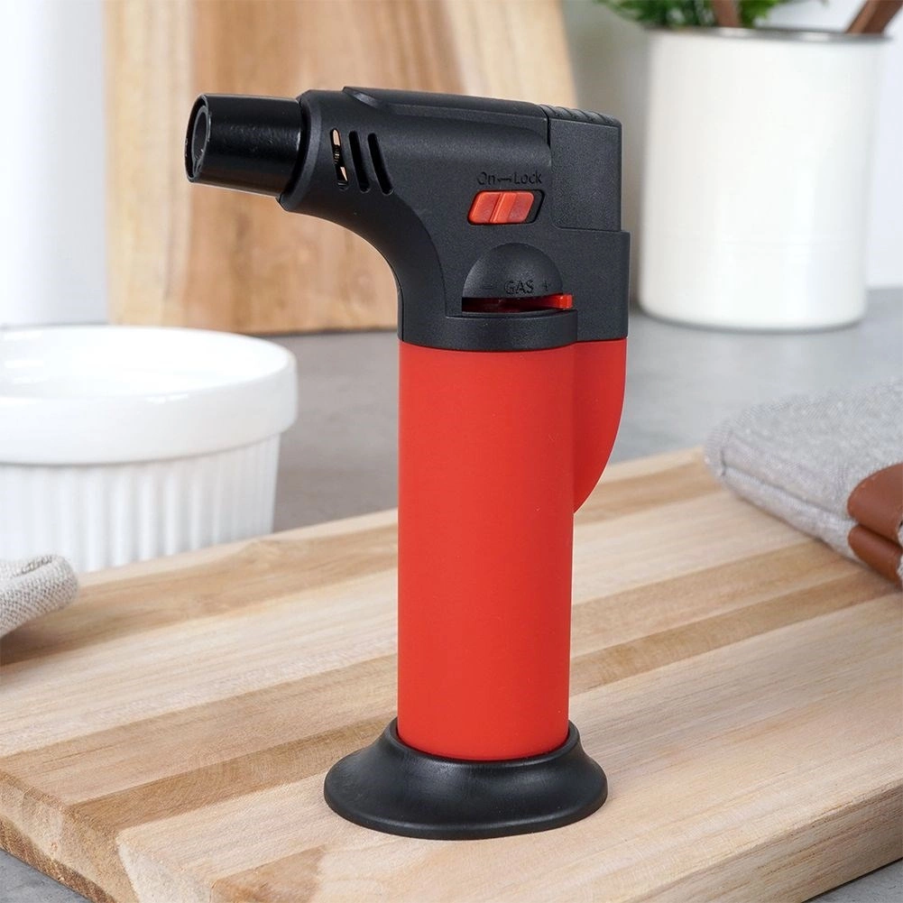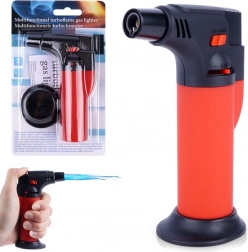 Plamenik je izrađen od izdržljivog metala i kvalitetne plastike, ima postupno podešavanje plina, ventil za jednostavno punjenje uobičajenim plinom za upaljače te kontinuirani rad zahvaljujući blokadi. Protuklizna ručka osigurava siguran hvat, a sigurnosna brava štiti od slučajnog paljenja i djece.