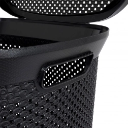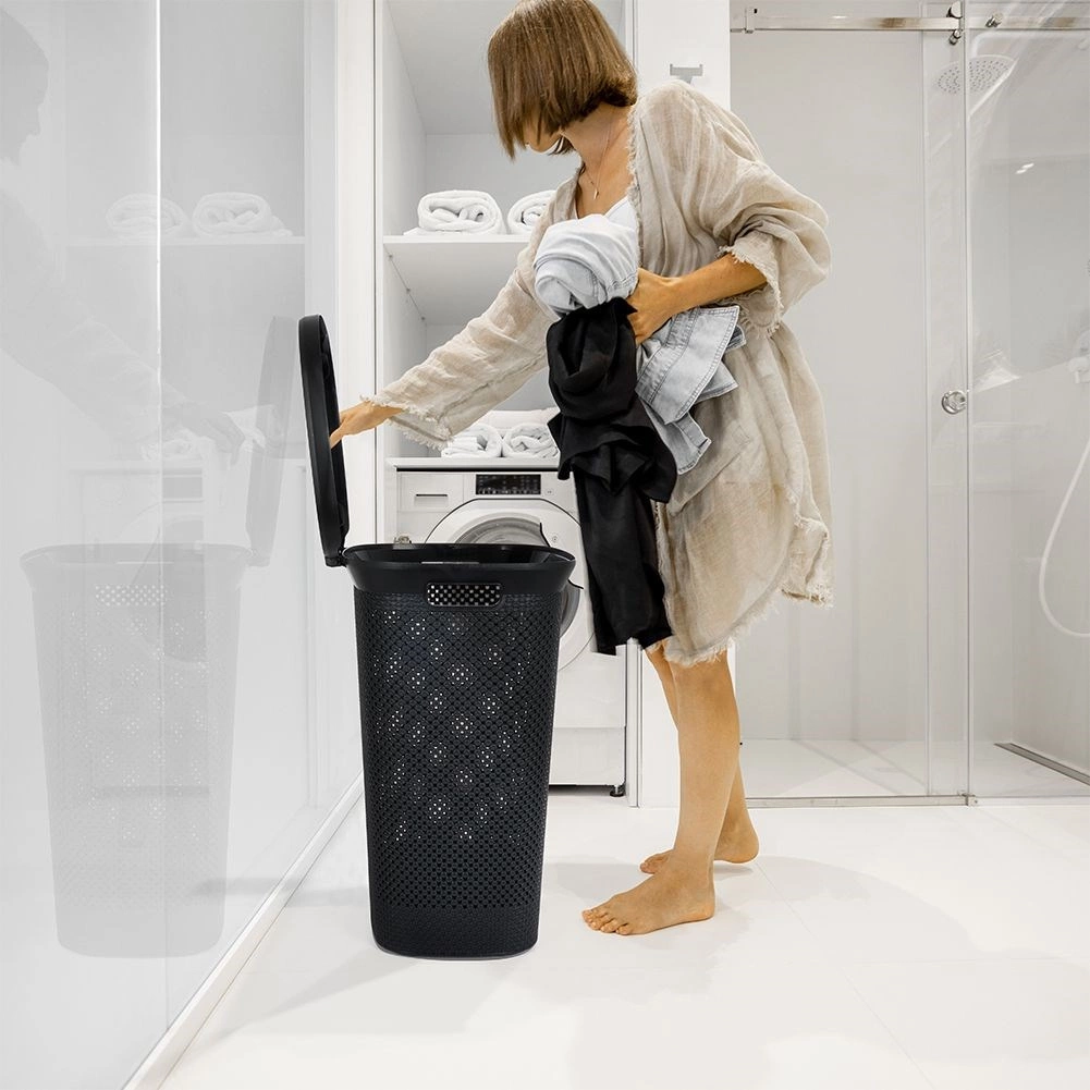 Ova prostrana košara za rublje spaja funkcionalnost i elegantan izgled. Poklopac na zatvaranje drži rublje izvan pogleda, a perforirane stranice osiguravaju cirkulaciju zraka kako bi se smanjili neugodni mirisi. Lagana, ali izdržljiva konstrukcija lako se prenosi zahvaljujući integriranim bočnim ručkama.